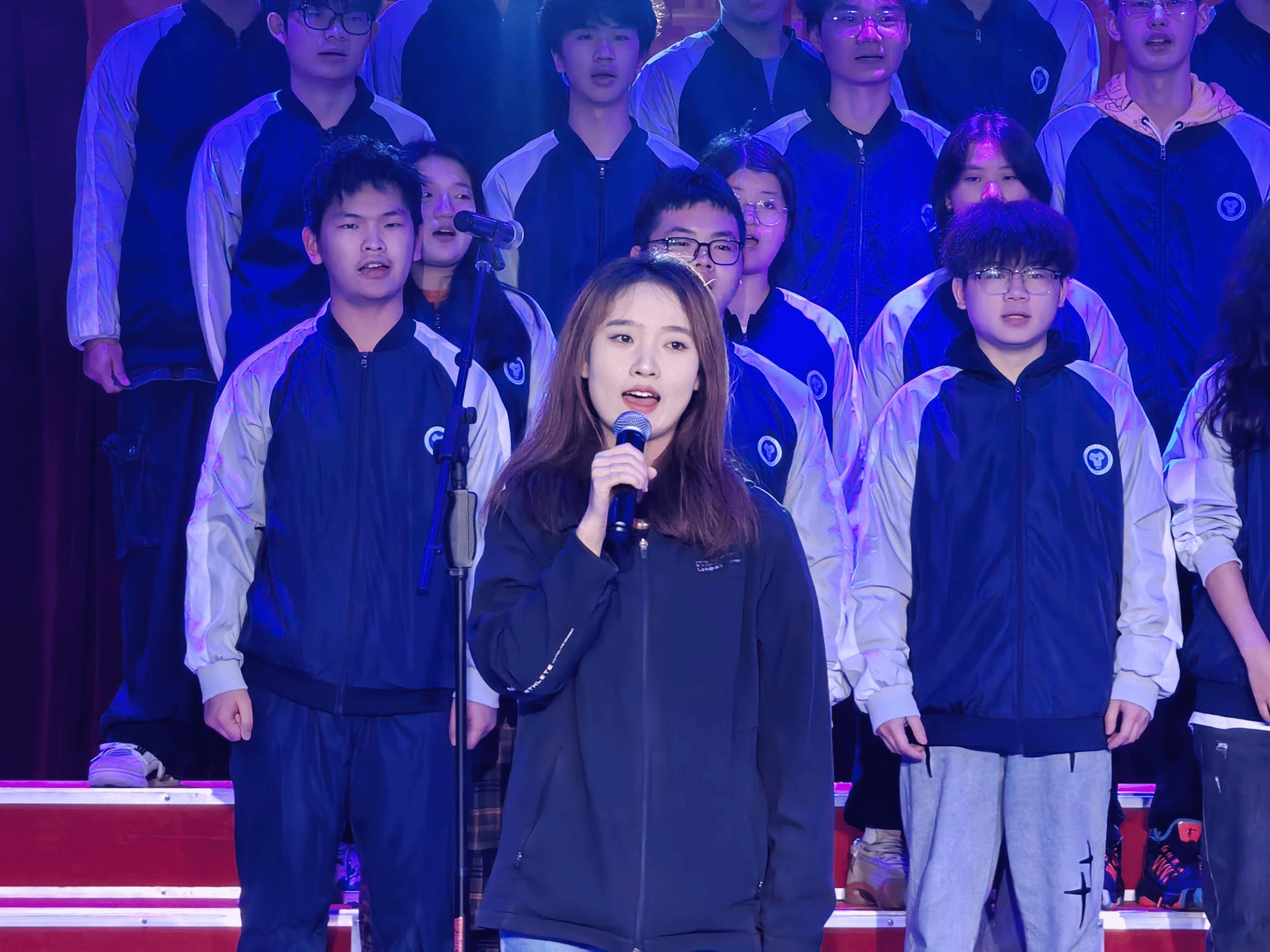 随后,人工智能卓越2班为我们带来的《大梦想家》更是将气氛推向高潮。跟随着指挥矫若游龙的动作,领唱的同学激情开嗓、自信明媚,合唱的同学们声音嘹亮、朝气蓬勃。中间还穿插了齐诵:“未来是什么样,心未眠夜未央,像钻石一样闪亮。站在逆风的方向,反而更大声的唱,青春就一次疯狂!”同学们的朗诵掷地有声、铿锵有力,充满了对未来的无限期望,彰显着青春的活力与热血。伴随着台下观众热烈的掌声,本次合唱比赛也接近尾声。最后,评委老师依次对本次比赛进行点评,全场同学合影留念。