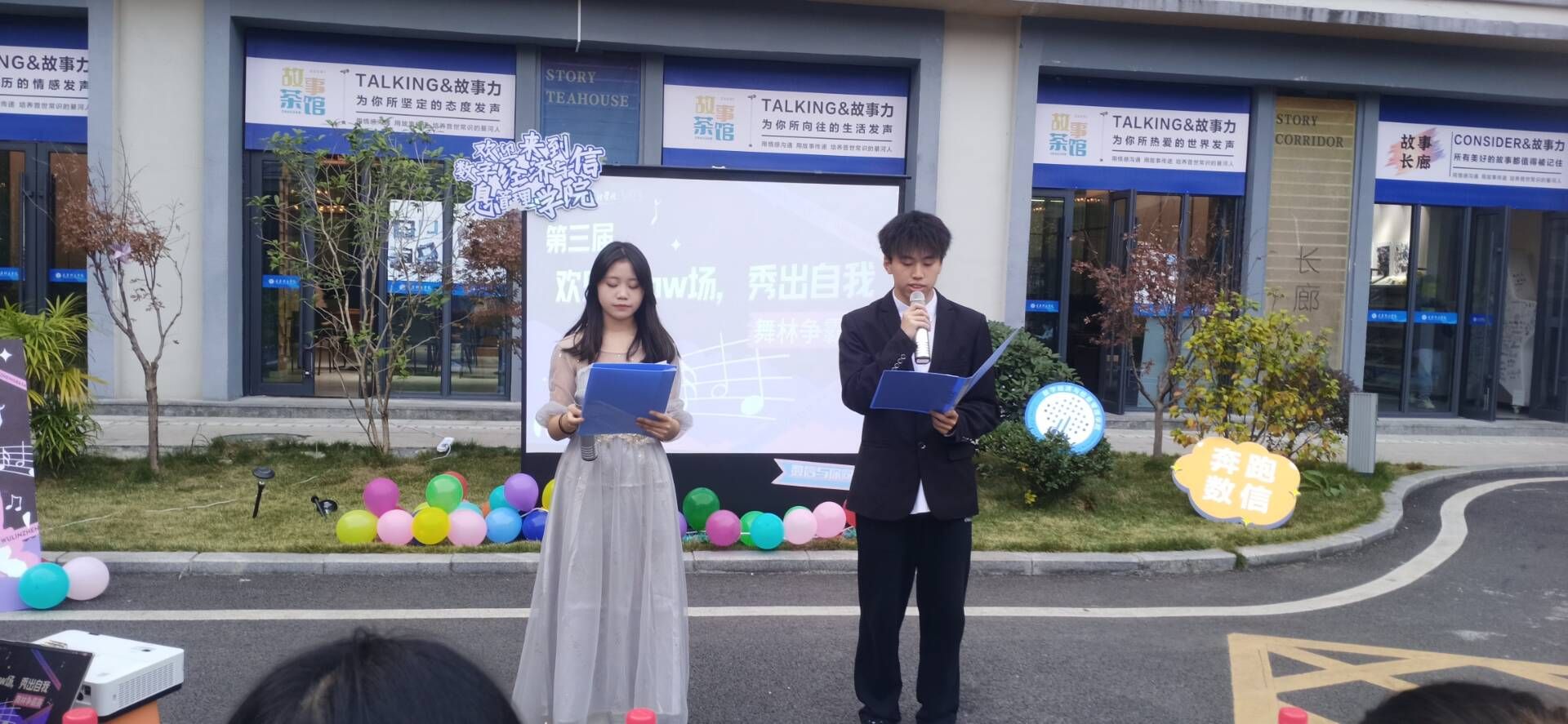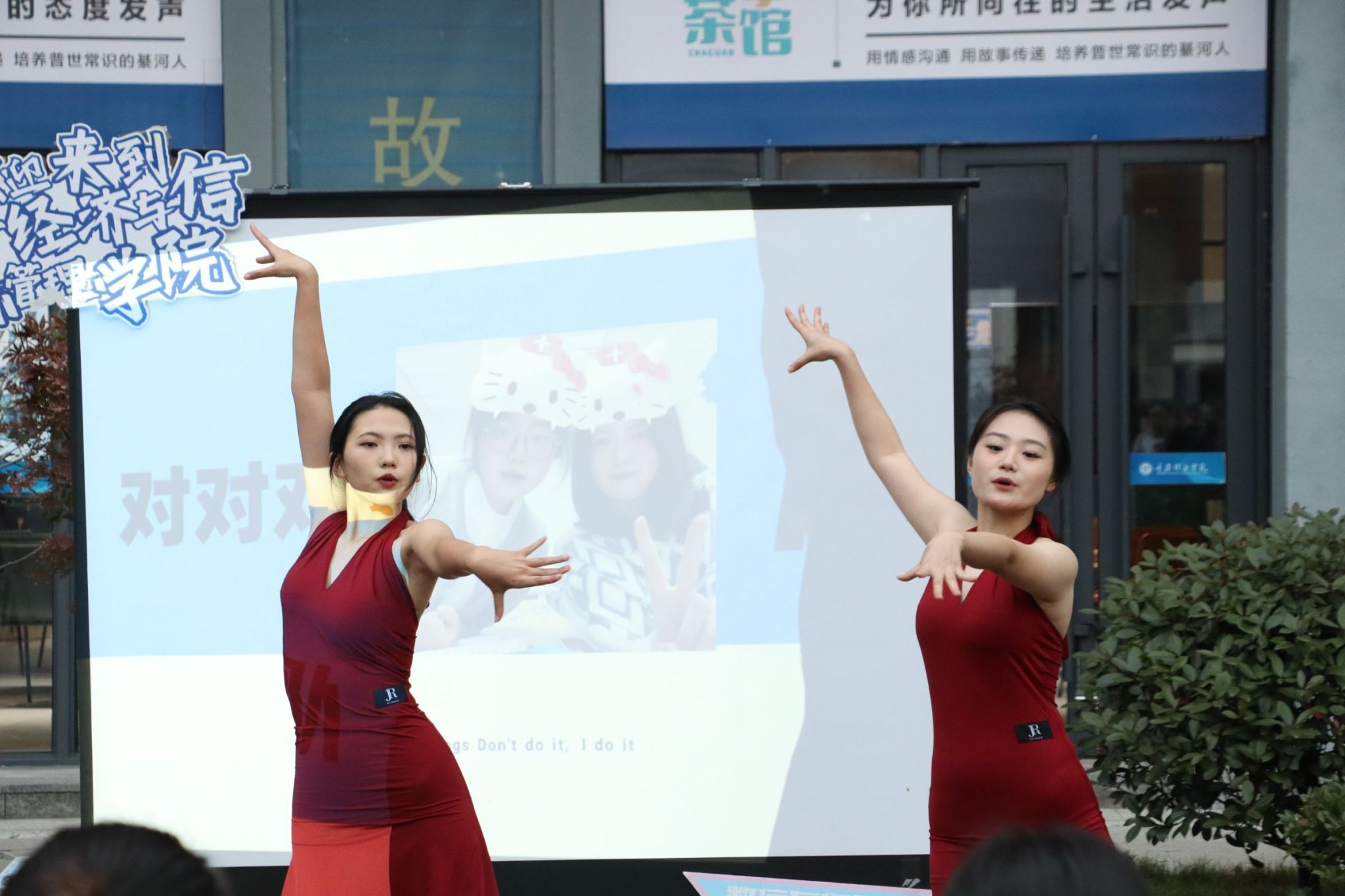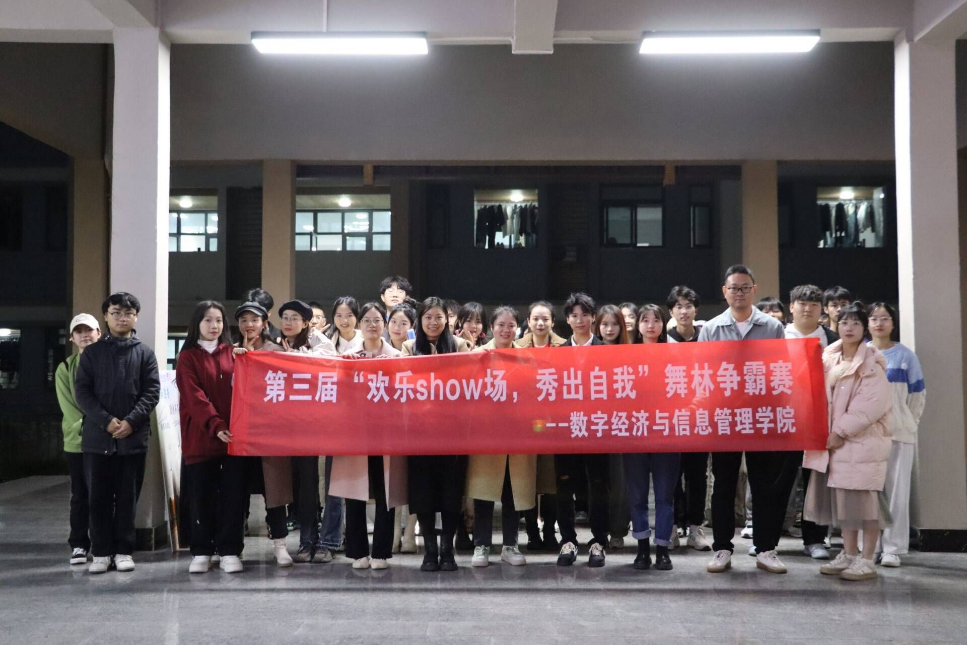 青春没有售价,现在他们风华正茂,正值年少!为了营造良好的校园艺术文化氛围,他们怀着期望的心情,翩翩起舞。充满活力的舞姿展现同学们的校园生活,展现青春活力,让同学们感受艺术的魅力,贯彻完满教育理念。由数字经济与信息管理学院文艺部主办的第三届“欢乐SHOW场,秀出自我”舞林争霸赛于11月22日在綦河书院中庭顺利举行。本次大赛有幸邀请到数字经济与信息管理学院学生工作办公室主任任超群老师、数字经济与信息管理学院团总支书记潘锐老师、竞技体育板块指导老师王健老师、宣传板块指导老师田园园老师与艺术修养与实践板块指导老师杨必菊老师几位评委老师莅临现场进行指点。