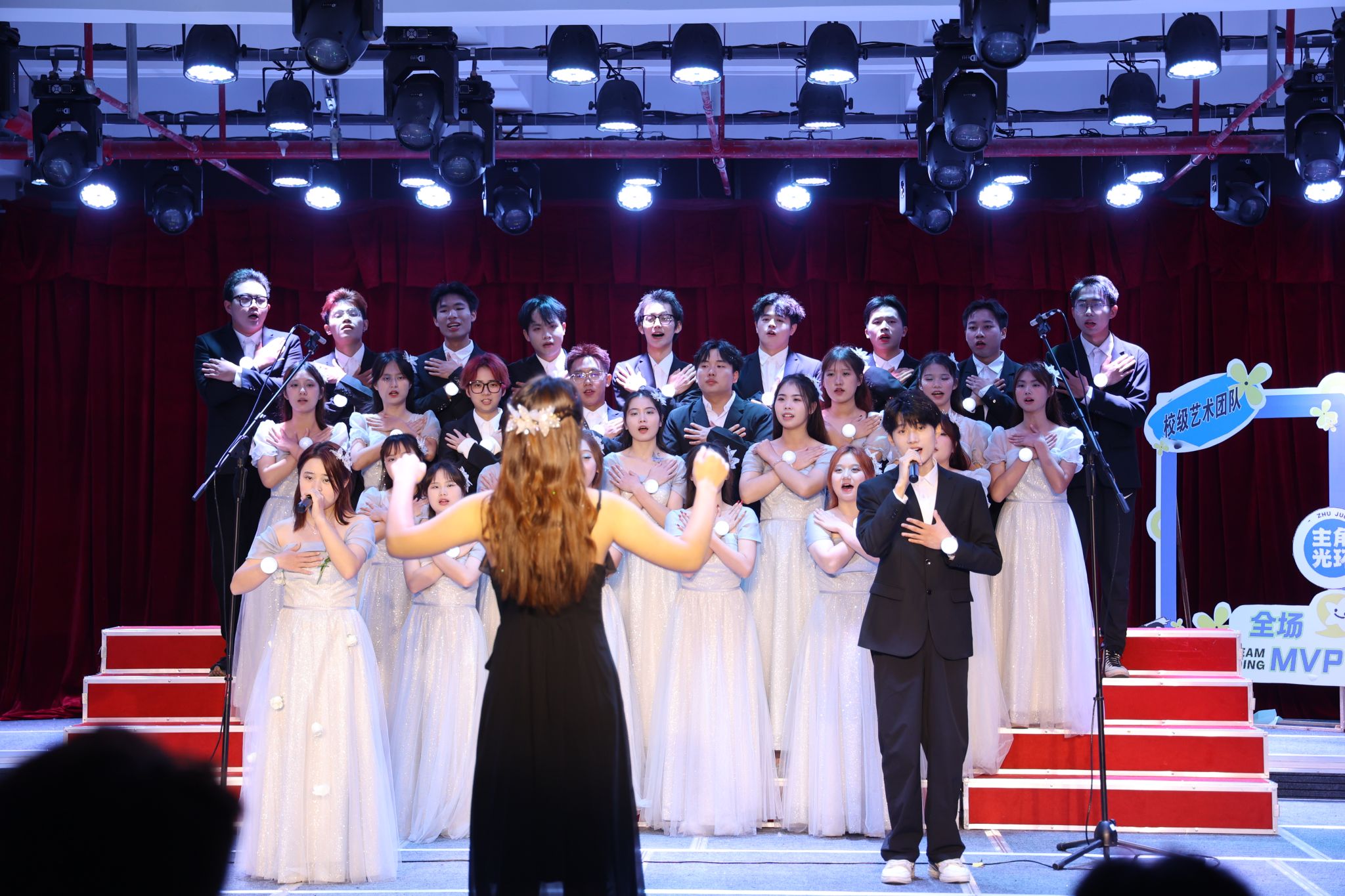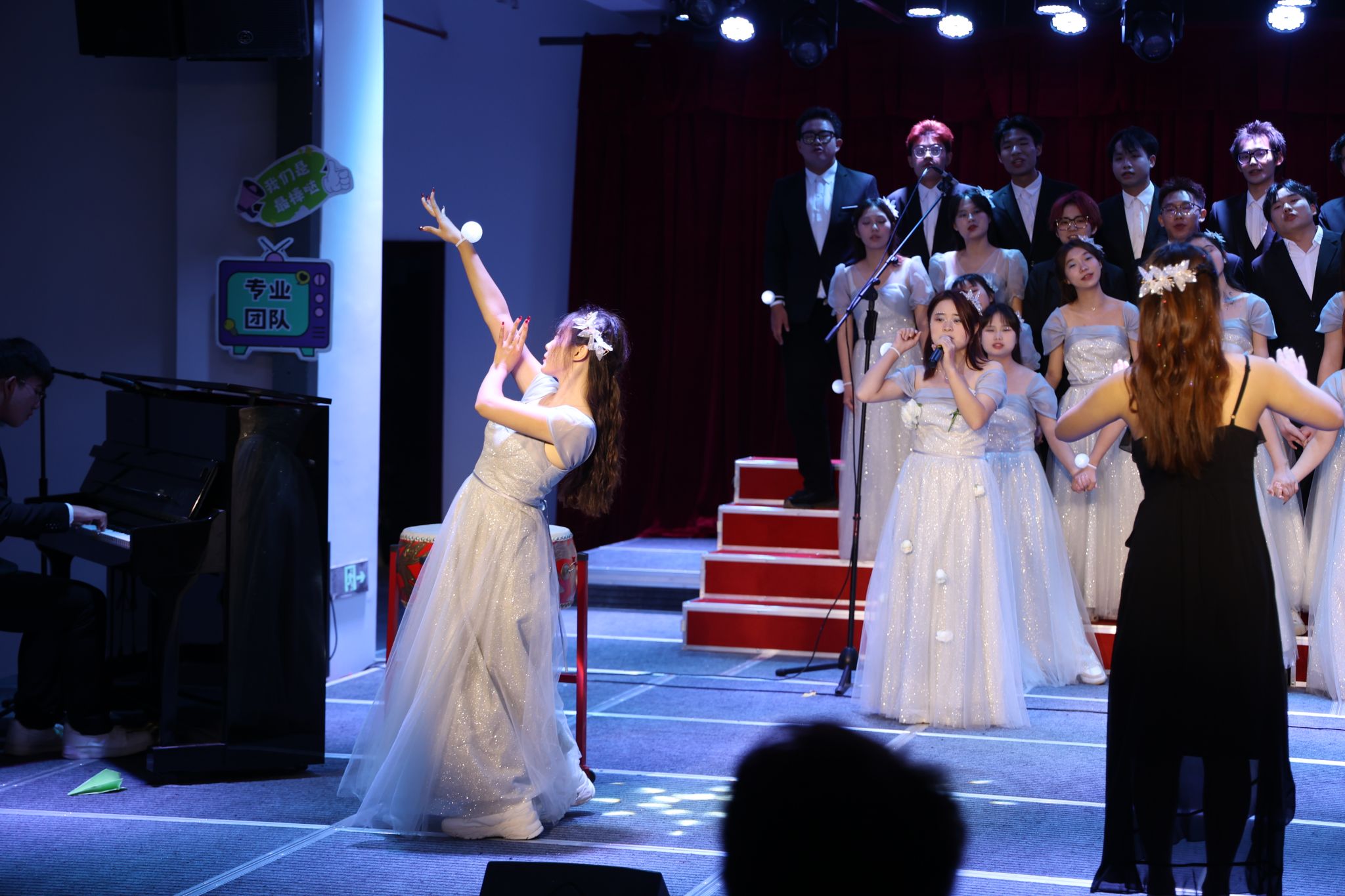 各支队伍精心编排,演出形式丰富多彩。器乐伴奏、舞蹈表演、精美道具等,观众席的同学和老师们也在积极为比赛同学加油打气,呐喊助威,为在舞台上绽放光芒的同学们做出了激烈的掌声,为合唱比赛营造了热烈的氛围。