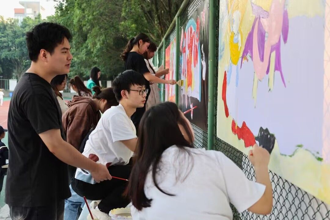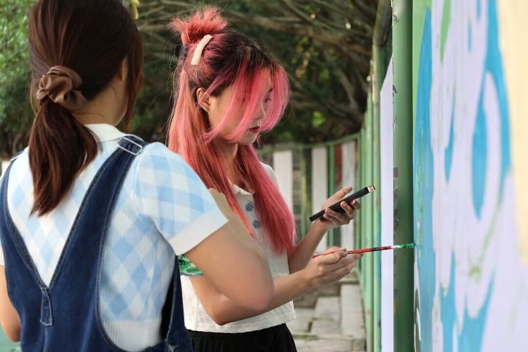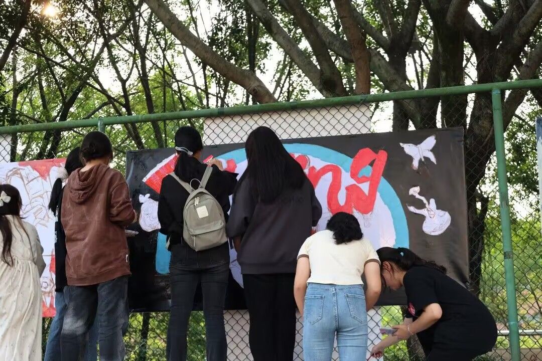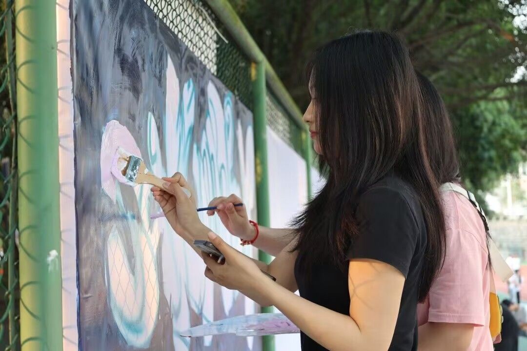 在同学们的辛苦绘画中,第一天的涂鸦活动已经进入尾声,希望同学们在接下来的活动中能将作品主题更加多元化、画面精致、构思精良完美的呈现!最后,我们诚挚邀请更多对本次活动感兴趣的同学来到我们的涂鸦活动现场,感受艺术带给我们的欢乐。