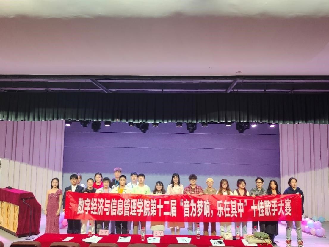 人生就像一张洁白的纸,每个人都在描绘着各自的绚丽色彩;人生就像一条漫漫长路,每个人都是走在路上的行者;人生就像一首动人的歌曲,每个人都从中感受到了乐趣。为了丰富学生的校园文化生活,激发同学们热爱艺术展露的积极与热情,因此,数字经济与信息管理学院于2023年10月11日下午两点半在六度空间星河音乐厅举办第十二届"音为梦响,乐在其中"十佳歌手大赛。本次大赛很荣幸邀请到科幻学院黄丽萍老师,数字经济与信息管理学院艺术修养板块指导老师陈西老师以及数字经济与信息管理学院辅导员:张婷老师,王瑞老师,邓颖蕾老师,张雪老师。
