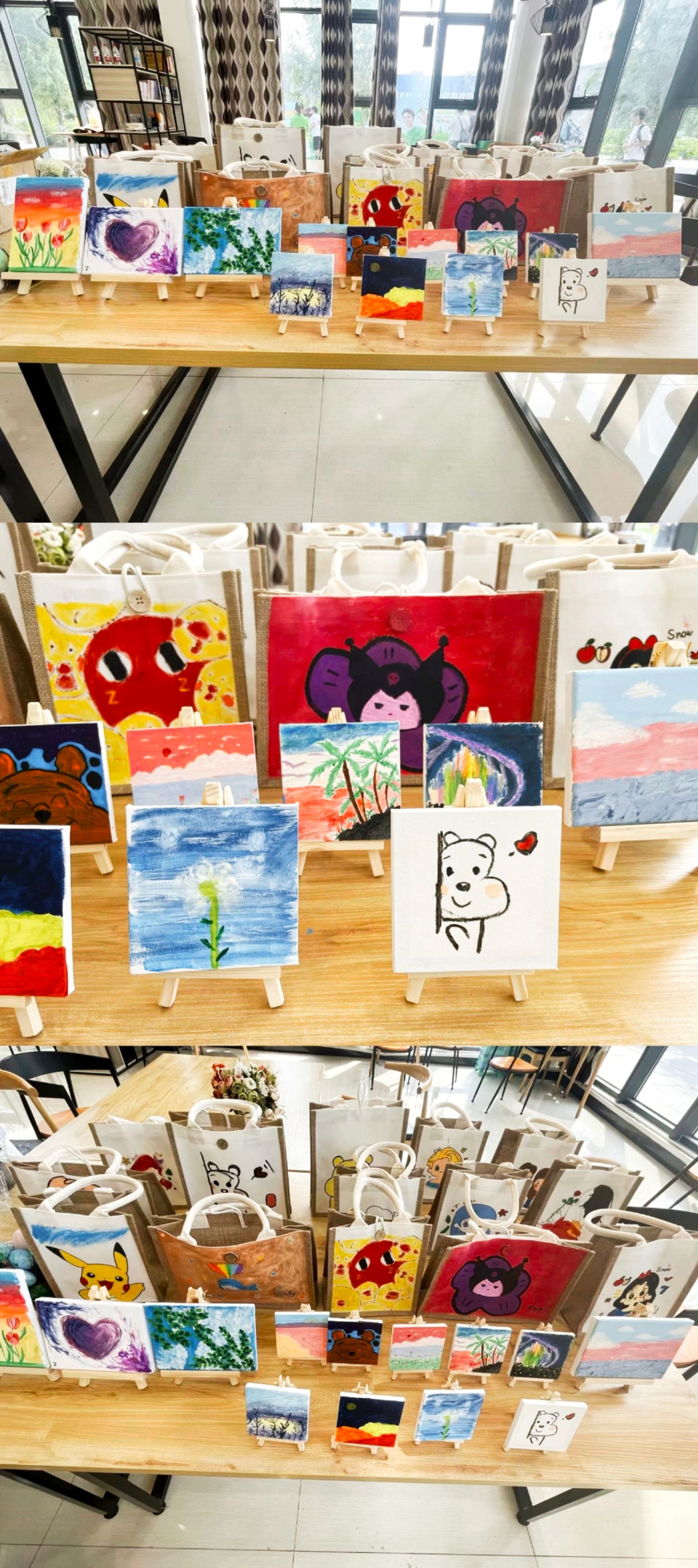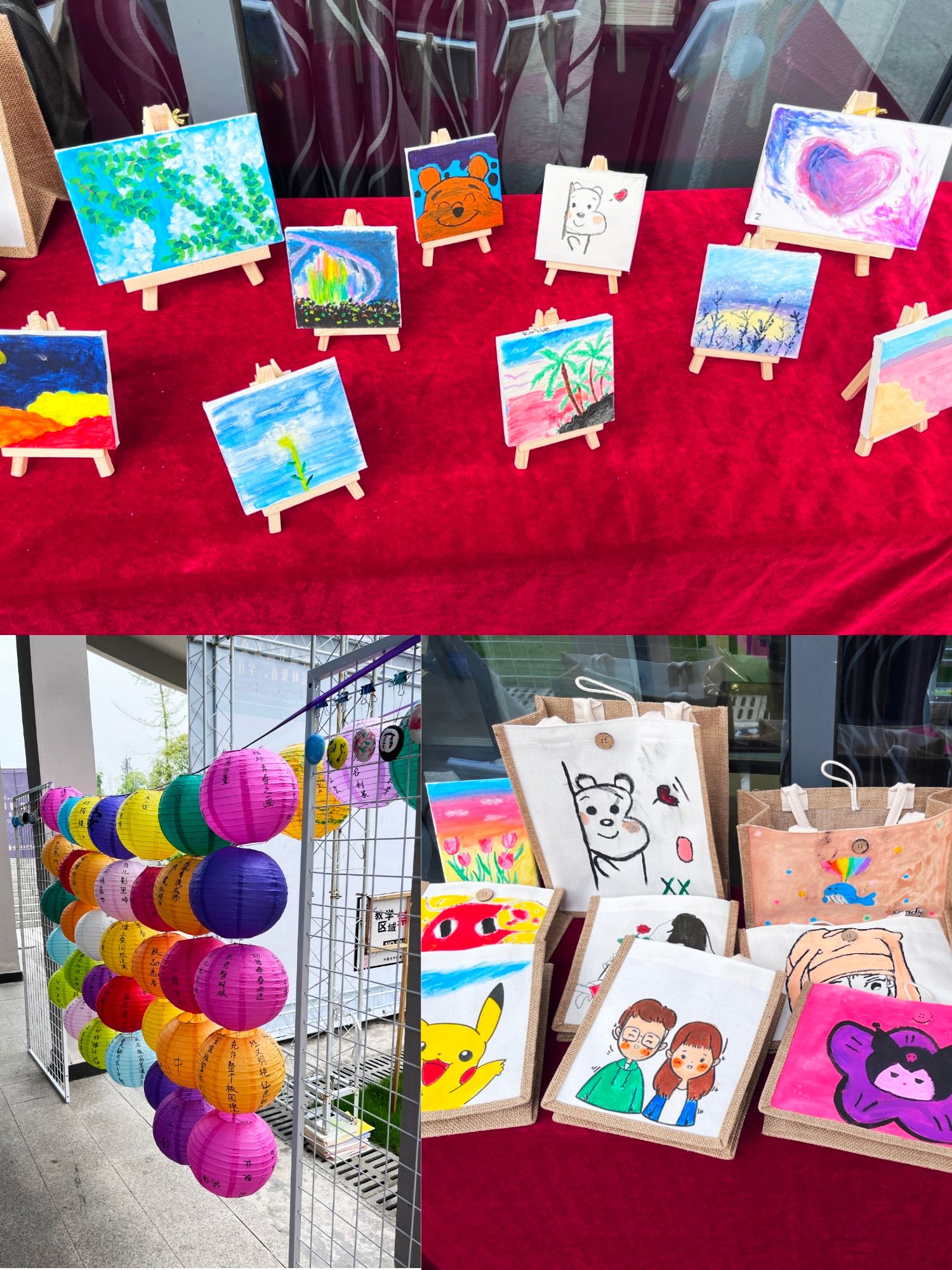 各种鲜艳的颜料勾勒出的帆布袋,赋予了它们新的魅力。而这些作品都是同学们自己动手,从设计到呈现,一点一滴做出来的。他们把天马行空的想象充分融入了作品当中,用手中的画笔诉说着自己独一无二的创意与想法。