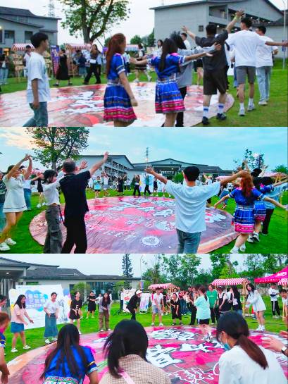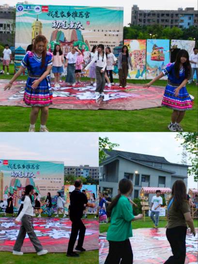 土家族摆手舞是国家级非物质文化遗产,每到逢年过节,土家族的人们都会在摆手堂跳起摆手舞,祭祀祖先和庆祝丰收。而在重庆移通学院行者大草坪,外国语学院WINK艺术团与行者公园书院群联合举办的全民艺术广场舞,特此结合土家族非遗舞蹈——摆手舞开展,来自各个学院的同学们也牵起手来,一同参加本次的全民艺术广场舞体验。
