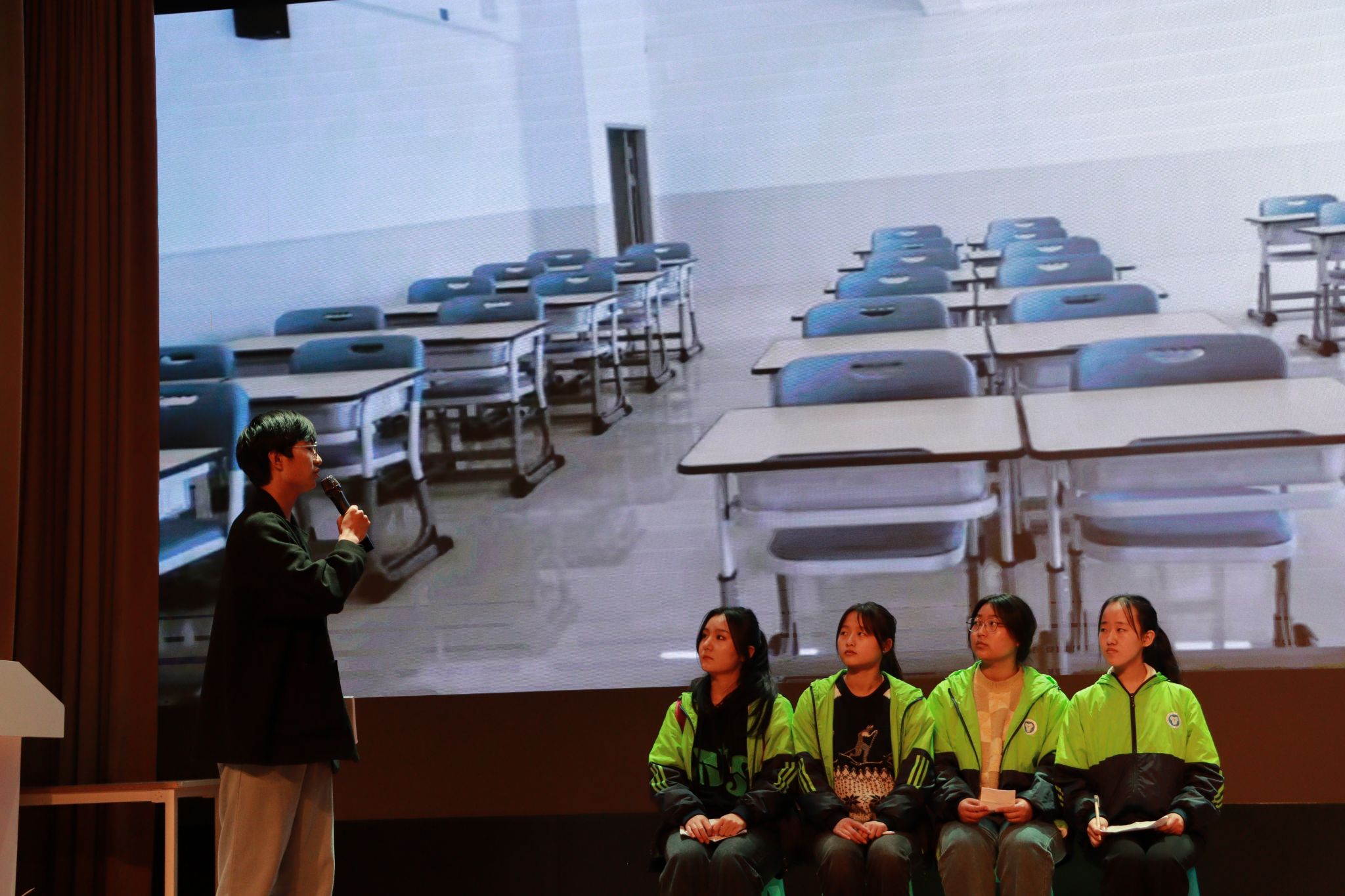 在各班级的精彩表演完美落幕后,梁紫微老师为本次微剧大赛做出了精彩的点评,对同学们的表演给予了高度的认可和表扬,表示通过精彩的表演也看到了同学们在背后努力的汗水,希望之后能有更多同学大胆而自信地拥抱舞台,展示自我。