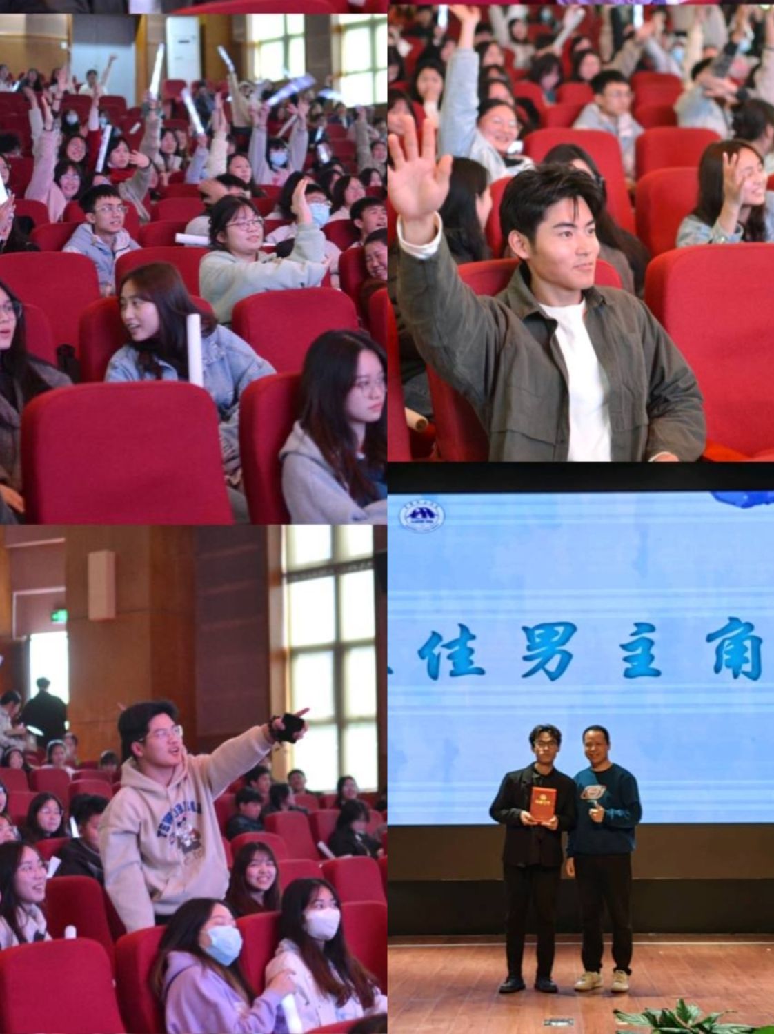四场精彩绝伦的表演过后,在主持人的带领下,现场的观众们一起玩起了“看图猜剧名”小游戏。游戏过后,迎来了本届微剧大赛的神秘时刻,一个视频回顾介绍了外国语学院“全能ACE”—李俊松学长的表演历程。随后,外国语学院的学工副院长祝玮老师为李俊松学长颁发了“最佳男主角”奖项。