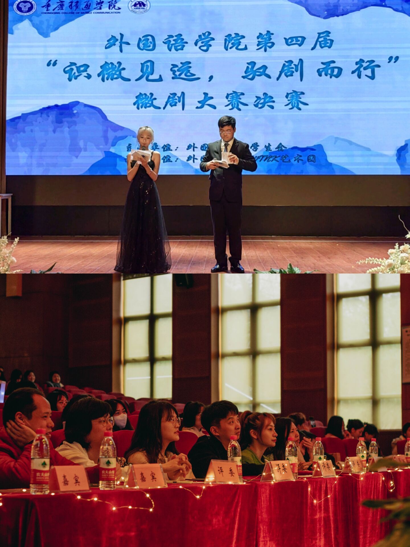 “展微剧风采,扬青春力量”,为丰富我校大学生的校园文化生活,培养自信心,提高语言表达能力,挖掘表演潜能,外国语学院第四届“识微见远,驭剧而行”微剧大赛决赛特于2023年3日24日下午14:00在下里巴人剧场举行。
