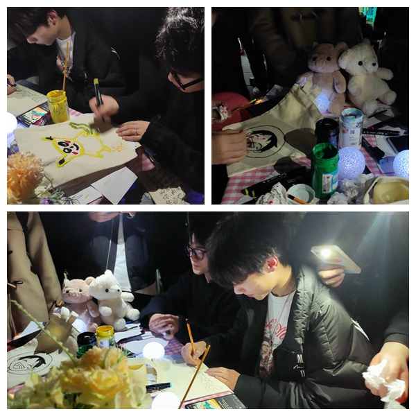 转换下一个场景,大家都拿着手机,兴致勃勃地在商量着要画的图片。桌子上还有几只可爱的布偶小熊也想参与其中,夜幕降临丝毫未能削弱同学们的热情,手机的发出点点的光,这正像我们是这个青春时代最闪耀的星光。有同学用卡通人物描绘出了班里女同学“嘻嘻哈哈”的笑脸;有同学画出了极具青春活力的皮卡丘;还有同学用多种颜色绘出多彩的拟人形象。这些生动、可爱的形象,就是全体女生在校园里给大家留下的青春与活力并存的印象。同学们笔笔生花,用一幅又一副栩栩如生的“形象图”,拼接成了重庆移通学院这个友爱帮助的大家庭。