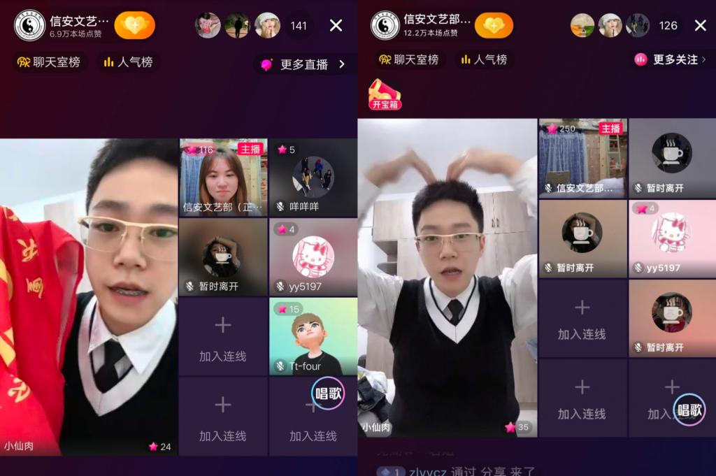直播间内,同学们热情高涨,踊跃参与,积极连麦一展自己的风采。虽然同学们人在寝室,但只要有一颗表演的心,哪里都是舞台。当然,这里不仅是学生们的舞台,同时也是老师们的舞台。在同学们的盛情邀请下,温朝一老师在为同学们送完晚餐后也来到直播间激情献唱,。