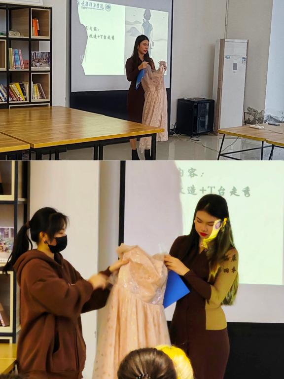 作为第一期礼仪训练营,主办方还创新了一个衍生活动——“旧衣改造”。即主办方现场提供礼服裙,鼓励感兴趣的同学带回礼服自行改造,并于训练营成果展之时穿上自己设计改造的衣服进行现场展示。既能满足大家“服装设计师”的梦想,也能穿上自己的设计成果,用现场学到的礼仪知识走上属于自己的自信舞台。大家的参与激情也为这次活动画上了圆满的句号。