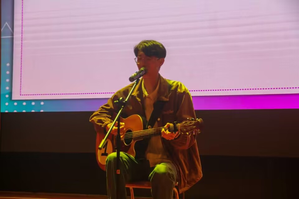 七点整,舞台大幕渐起。首先是由大学生舞剧团和南湖Muses舞蹈工坊联合带来舞蹈《Adonis&Jungle》,燃炸全场的灵动舞姿将现场的气氛带入了第一波高潮。之后,剧场迎来了今晚的第一位歌手翁俊彬带来的歌曲《达尔文》,一号歌手清亮的嗓音配合吉他悠扬的旋律让现场观众越发的期待之后出场选手们精彩的表现。