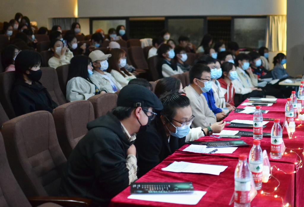 莅临现场的评委及嘉宾有:外国语学院学工副院长祝玮老师、团总支书记吕戈老师、艺术教育中心音乐制作方向教师向成老师、中德学院艺术修养与实践板块指导老师肖瑶老师、科幻学院器乐方向教师刘然老师、外国语学院艺术修养与实践板块指导老师屠建丽老师、外国语学院竞技体育板块指导老师阳果老师、外国语学院2022级辅导员于彩仙老师、杨茂林老师以及学生评委B&B乐队主创、主唱兼节奏吉他手张桌钒。
