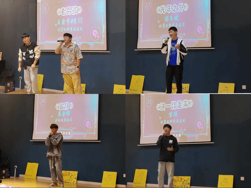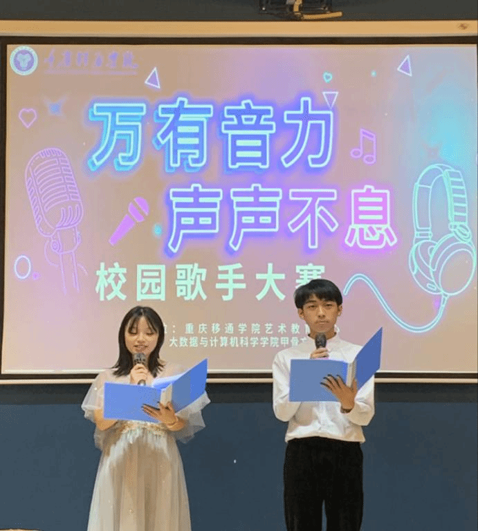 金秋十月,是丰收的季节、是温暖的季节、同时也是我们载歌载舞的季节。音符是欢快的舞蹈,青春的风采在这里熠熠闪光!乐曲是心灵的欢歌,优美的旋律在这里驭梦翱翔!在这灯光与微笑构成的舞台,我们舞动激情的青春;在这笑声与歌声汇成的海洋,我们飞扬嘹亮的歌喉。为全面贯彻国家教育方针,落实我校“四位一体”教学模式,进一步推进高雅艺术进校园,丰富全体学生校园文化生活,提高艺术修养,展示移通学子的精神风貌,特于2022年10月19日下午18:00在綦河书院二号楼东篱故事茶馆举办了“万有音力·声声不息”大数据与计算机科学学院校园歌手大赛初赛。出席这次活动的评委有綦江校区第一届校园歌手大赛冠军陈天其、季军廖大凯、优秀奖获得者田明月以及甲骨文艺术团部长朱蓥蓥、副部长雷君阳。