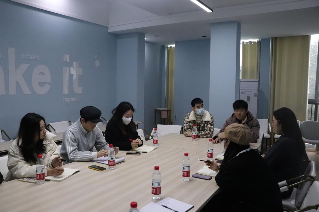 参加本次交流会的人员,由艺术教育中心指导老师陈建辉、侯宇卓老师,艺术传媒学院艺术修养与实践板块指导老师钟梓琪老师以及光影艺术团干部及干事组成。本次交流会陈建辉老师对艺术传媒学院下学期艺术修养与实践板块的活动进程进行了梳理。艺术教育中心指导老师们针对下学期的活动,提出具有指导意义的建议,并细心解答了同学们的问题。会议室被活跃的交谈萦绕,会议十分顺利的进行着。