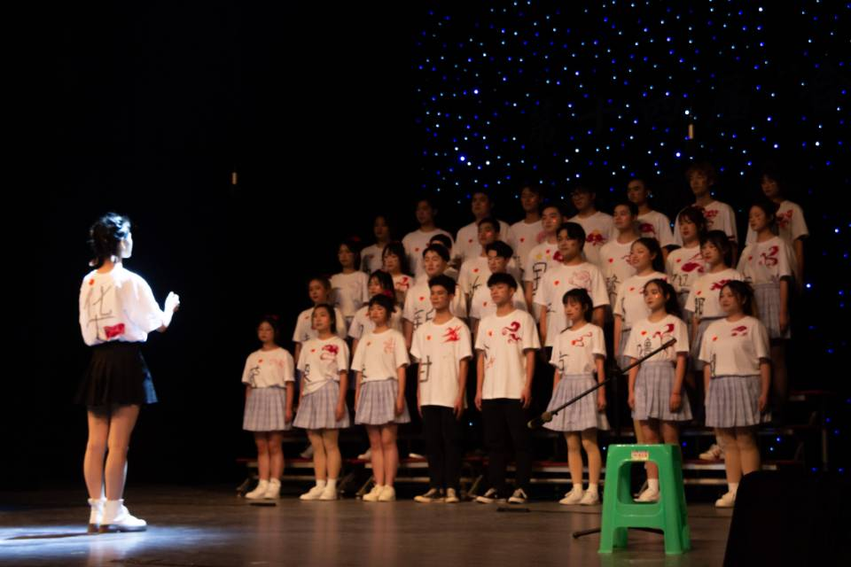 合唱团的歌声洋洋溢耳,风风韵韵,舞台上星光点点,璀璨耀眼。指尖轻点,配合默契,迸发出的音符,连成动人旋律。指挥挥舞的手臂,能感觉到她沉浸音乐的情绪,时而高亢时低迷。女声高音嘹亮、男声浑厚有力,仿佛一首生命诗,叙述着他们的过去,描绘着对未来的憧憬。