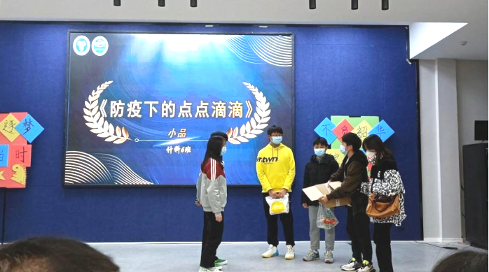 “我是门……”节目开始上半场,观众便被“工具人”扮演的“一扇门”逗笑了,原来是计算机科学与技术6班带来小品《防疫下的点点滴滴》,既不缺小点,又将大家带回到新冠肺炎疫情最困难的时期,也让观众看到了为疫情防控努力奋斗的每个人。和计科6班相同,数据科学与大数据技术专业2班、7班也围绕疫情防控主题,采取了合唱+朗诵的形式为大家带来《只要平凡》《我们不怕》,或温柔婉转,或慷慨激昂,用声音传递感动,齐向“最美逆行者”致敬。