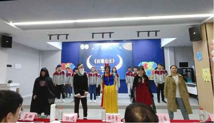 “今天我们上语文课,考考大家对偏旁部首的掌握程度。”“玩玻璃球、馅饼馄饨……”数科4班的小品《上课请听话》在复赛的基础上,融合加入了更多喜剧元素,如方言、网络热梗、歌舞等形式,将活动带入了小高潮。软件工程3班改编的《白雪公主》节目,更是以新奇的服装道具、夸张且传神的表演、无厘头的对话,将现场评委和观众逗得捧腹大笑,表演流畅、内容新颖也赢得了现场观众热烈掌声和欢呼。