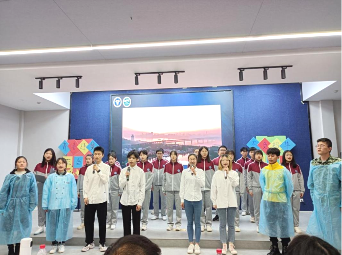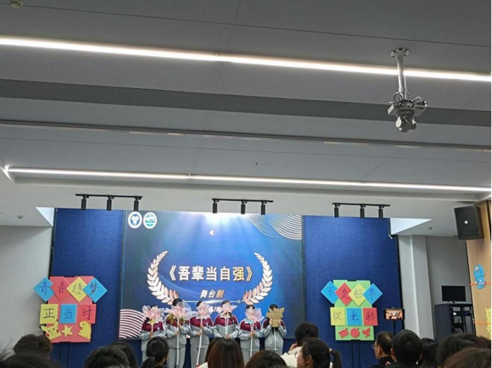 而后,数字媒体技术1班登场,带来了舞台剧《吾辈当自强》,唱出青年大学生的蓬勃朝气,彰显出年轻大学生铁骨铮铮的勇气;数媒2班创新节目形式,以配音+合唱的形式演绎节目《擎旗自有后来人》,赞颂中国共产党百年的筚路蓝缕和伟大成就,深深引起观众的自豪感与荣誉感。计科1班、数媒6班和计科2班分别带来《北京东路的日子》《歌舞青春》《稻香》等等节目,纷纷向青春时光表白、向移通校园告白、向前人榜样致敬,为现场又增加了活泼氛围。