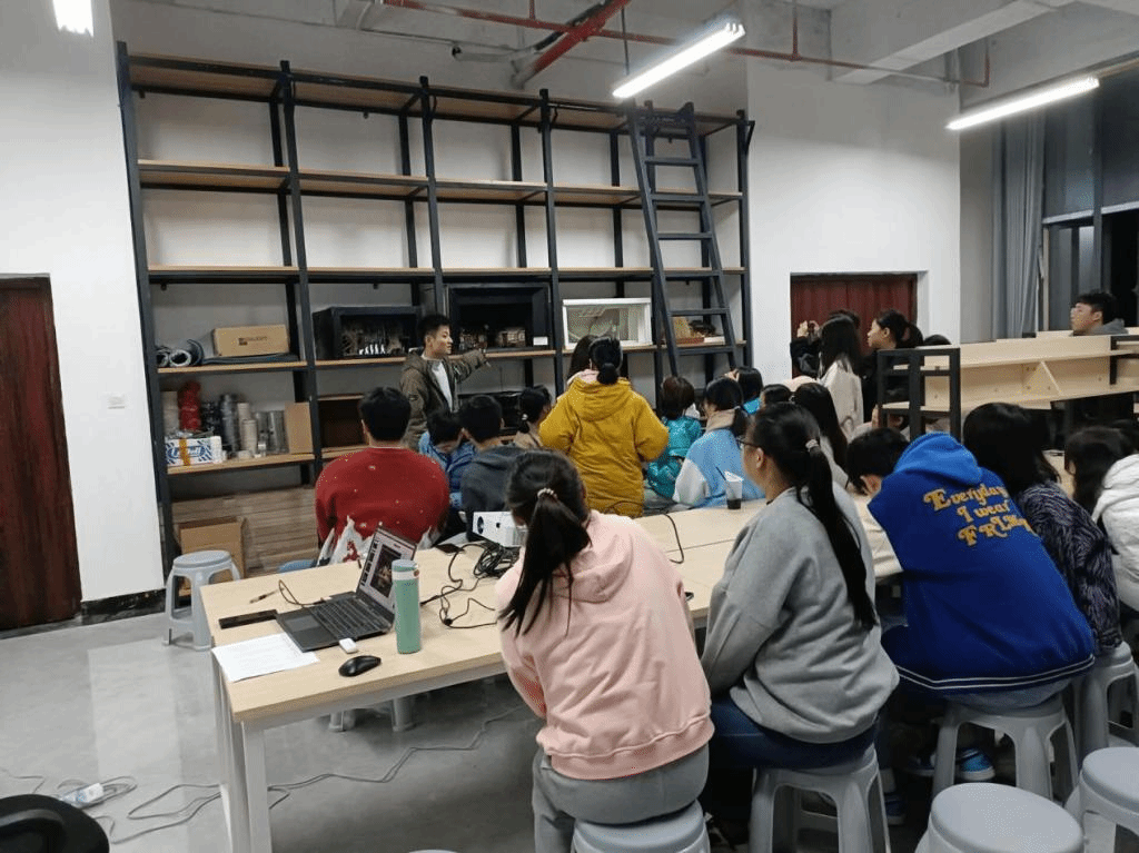 随着空旷的舞美制作间渐渐热闹,艺术公开课正式拉开序幕。何老师问同学们:“大家知道什么是舞台美术设计吗?” 舞台美术是戏剧和其他舞台演出的一个重要组成部分,舞台美术设计是一门综合艺术,它包含美术设计、服化道、灯光音响等,所以,舞美设计是相互合作和实践性的工作。简单来说,舞美就是舞台上呈现的一切东西,包括人和物还有光;我们现在说舞台美术设计,除了符合戏剧演出的舞台布景,更是时空的艺术。或者说舞美设计已经成了一种新的媒介,它连接绘画、音乐、建筑、新媒体,连接了空间、时间、多维度,连接了观众、演员还有“我”……