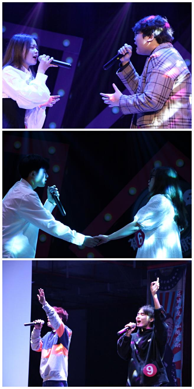 比赛进行到第二轮,台下的同学热情高涨,为选手们呐喊加油,台上的选手们也摩拳擦掌,激情满满。对唱结束后,最终评委评分靠前的:田明月、陈天其、廖大凯、樊龙温四位同学进入到最终的争夺战。他们在今晚将自己的热情与自信完全交付于这个舞台,一字一句演唱的是放飞艺术梦想的憧憬,更是生活中值得记忆的点点滴滴。