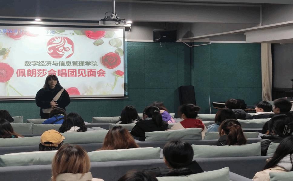在我们平凡的生活中,对音乐的追求从未停止。为帮助同学学习艺术专业知识提升艺术修养,丰富校园生活,数字经济与信息管理学院佩朗莎艺术团与艺术部于11月22日18时在爱莲书院多功能影音室举行佩朗莎合唱团师生见面会。本次见面会邀请到钓鱼城科幻学院声乐教师黄丽萍老师,黄丽萍老师曾成功举办多场个人音乐会、多次获得孔雀奖、江苏省优秀学位论文奖、万叶杯国民音乐大会奖等赛事大奖。“歌声是心灵的眼睛”是佩朗莎合唱团一直坚守的理念,招收具有音乐爱好且激情饱满的学生,他们聚集在这里,发展成一支充满活力的文艺队伍,为多彩校园生活增添一抹音乐魅力。