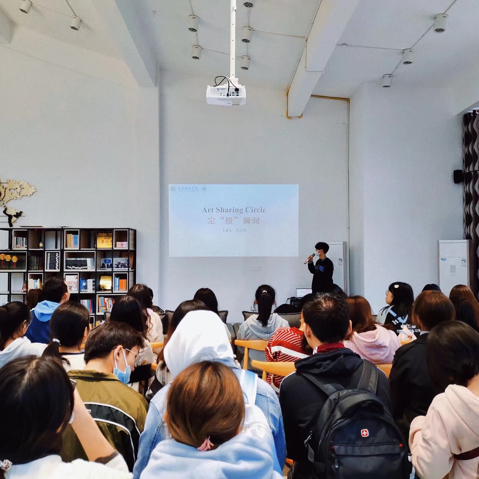通过一个快门,摄影让每一个人拥有了捕捉世界瞬间的机会。使用一个技术性的窗口,人们以此来记录光的轨迹。为提高学生的审美能力,激发摄影的兴趣,2021年10月26日中午,由外国语学院学生会WINK艺术团举办的Art Sharing Circle“定摄瞬间”摄影训练营在天渠110顺利举行。此次分享会邀请到了来自数字经济与管理学院的曹兴华学长为同学介绍了摄影创作的入门知识。参加本次活动的有外国语学院艺术修养板块指导老师屠建丽以及50余名训练营成员。