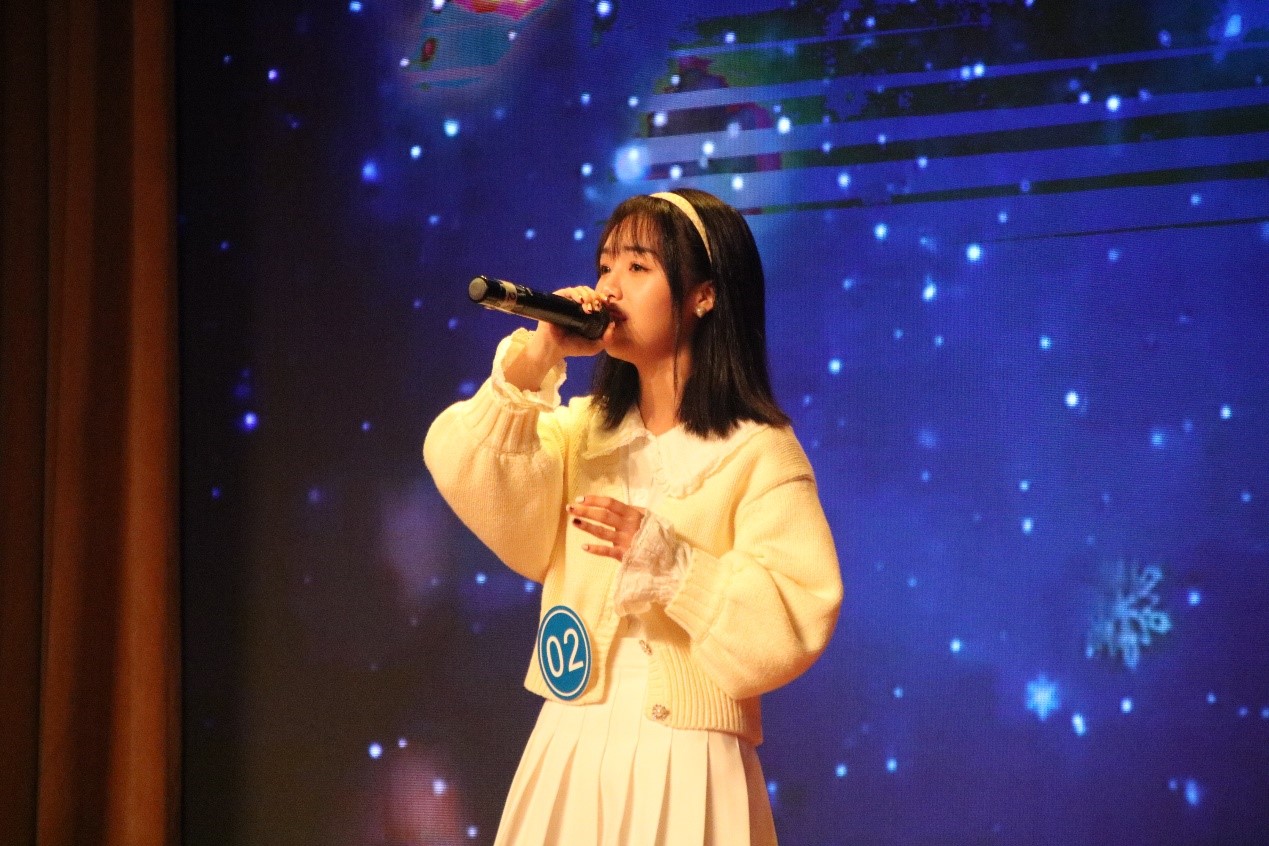 经过初赛、复赛的激烈角逐,12名优秀选手脱颖而出,尽管准备时间非常急促,他们依然给听众们带来了一场音乐盛宴。一支炫酷的开场舞瞬间点燃现场,主持人随即宣布比赛正式开始。第一环节—群星荟萃,选手们依次带来一首3—5分钟的个人风采表演。二号选手张丹泥演唱的《我曾经也想过一了百了》以不甘被生活磨平棱角,不甘命运仍旧乐观面对生活的正能量心情像一束黑夜中的光芒,照亮台下每一位听众。五号选手张雪《skinny love》的演唱单词发音标准,吐词清晰,音准把控的拿捏深得评委老师们的好评。 八号选手张连欣带来的是Hush!的曲目《第三人称》,歌词“天真以为是他的独特品味,字母画面分割上演谍对谍”其意思回味起来就如同它的歌名一样以第三人称的视角从另一个角度审视自己,品味自己。