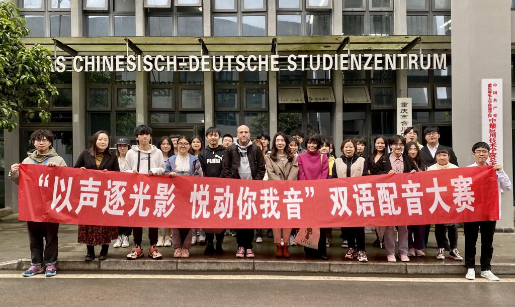当广袤的天空云卷云舒的那一刻,我们相聚在这里,共同体验语言带给我们的无限乐趣。从大学的时光里匆匆走过,却总有一些美好的回忆留在我们心底无法离去。其中,语言所带给我们的享受与回忆似乎是极其珍贵的。有时候,往往一句话就可以让我们想起那年的自己,那年的我们,那些年经典的台词带给我们的欢声笑语。3月26日16:00,第十一届中德文化节之“以声逐光影,悦动你我音”双语配音大赛和同学们在中德会议室相约,活动邀请到了Peter老师、钟佳利老师、刘佳老师担任评委。