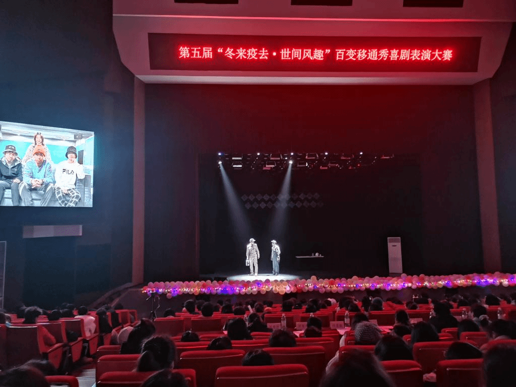 有人说,生活是一出喜剧,因为它总能在我们不开心的时候让我们开怀大笑,怀上一个梦想,用喜剧表演给大家带去欢乐。凛冬散尽,星河长明,趣味人生,欢笑百态。疫情的阴霾散去,昔日的欢笑重聚。笑一笑,烦恼抛;笑一笑,十年少。在这个寂寥的冬日,不为往事忧,只为今日俱欢笑。12月20日19:00,我院于缤果大剧院举行了第五届“冬来疫去,世间风趣”百变移通秀喜剧表演大赛决赛,莅临本次活动的嘉宾有合川区团委青少年活动中心副主任高海坤老师、重庆邮电大学移通学院艺术教育中心副主任邹贤达老师、艺术教育中心指导老师吴娇老师、艺术教育中心指导老师赵建萍老师、数字经济与信息管理学院副院长任瑞娟老师、数字经济与信息管理学院吴自立教授、学生工作办公室主任兼团总支书记廖阳老师、外国语学院艺术修养与实践版块指导老师魏宇竹老师、大数据与软件学院竞技体育版块指导老师王琦老师 、数字经济与信息管理学院艺术修养与实践版块指导老师曹文扬老师、数字经济与信息管理学院社团活动版块指导老师彭薇薇老师、数字经济与信息管理学院志愿服务版块指导老师马莉老师、数字经济与信息管理学院竞技体育版块指导老师尹恒老师、数字经济与信息管理学院组织建设版块指导老师王瑞老师、数字经济与信息管理学院2017级辅导员周利娜老师以及由各院书记主席团组成的大众评审团。