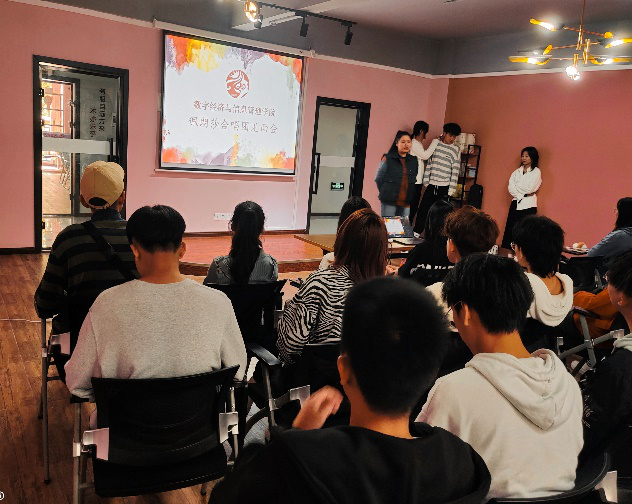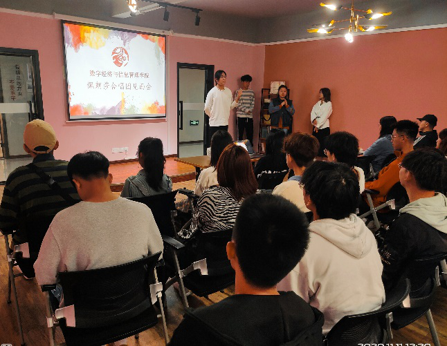 桥东桥西好杨柳,人来人去唱歌行。在这秋高飒爽的季节,志同道合的伙伴们齐聚一堂,共同欢庆合唱团的正式成立。大会之初先由数字经济与信息管理学院团总支学生会艺术修养板块分管主席张慧,以及文艺部部长黄羽萱,杨鑫,尹毅凡进行自我介绍,紧接着合唱团的团员们也依次介绍,掌声如潮,现场一片沸腾。