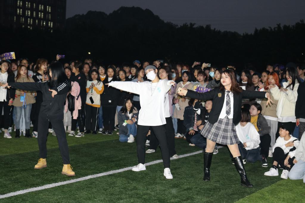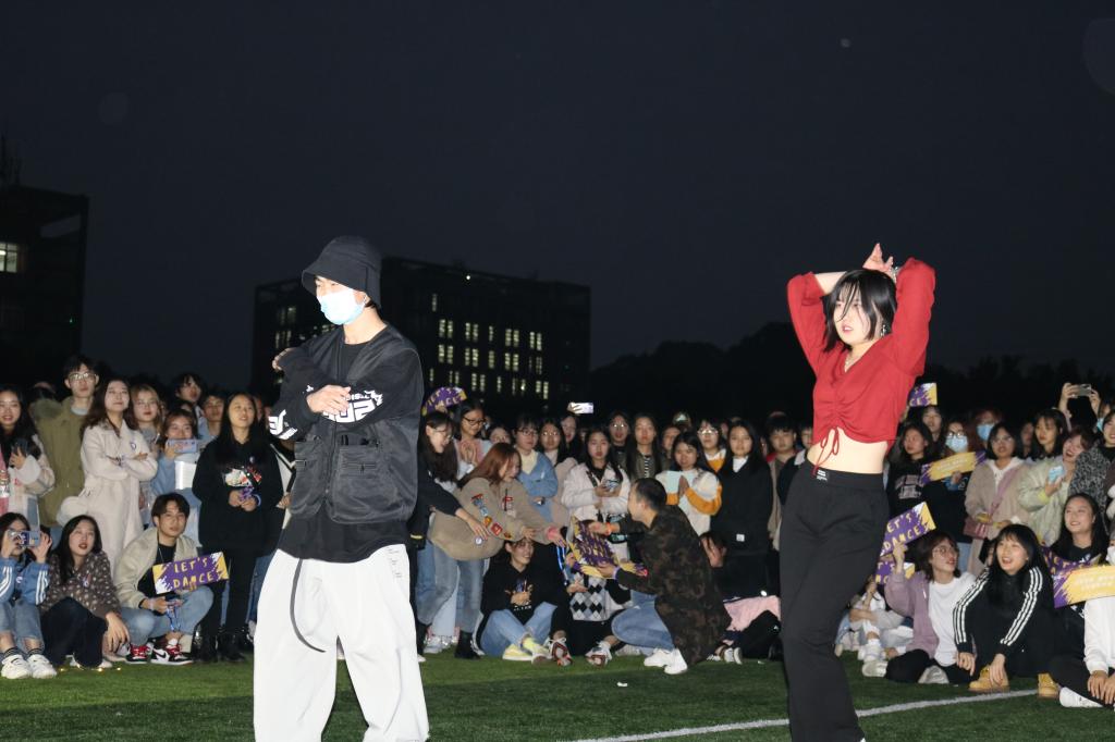 到了激动人心的随机舞蹈互动环节,未知的音乐风格任意切换,但同学们又都能轻松驾驭。外场同学举起手中的横幅,荧光手环在夜色下更加夺目,在璀璨灯光的映照下,每一位同学的舞姿各有千秋,更是有专业舞者的popping freestyle令人瞠目结舌。