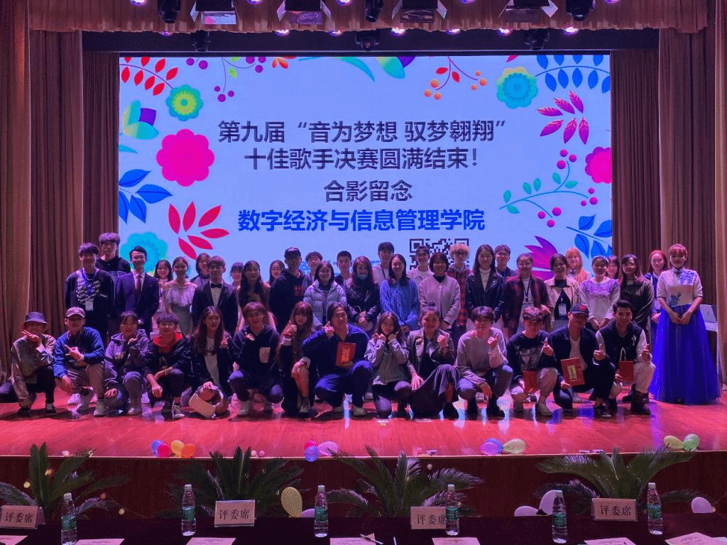 尼采曾说:“如果没有音乐,生活就是一个错误。”可见音乐是生活中重要的调剂。初秋的移通,音乐与校园街景更加相配。秉持着丰富同学们的生活,展现学生个人才艺与风采的初心,我院于10月14日晚19时在下里巴人剧场举行了数字经济与信息管理学院第九届“音为梦想 驭梦翱翔”十佳歌手决赛。本次比赛莅临现场的评委及嘉宾有艺术教育中心指导老师吴娇老师、赵建萍老师,数字经济与信息管理学院副院长任瑞娟老师、数字经济与信息管理学院艺术修养与实践板块指导老师曹文扬老师、爱莲书院发展导师金鑫老师、叶芳老师,校园社团活动板块指导老师彭薇薇老师、志愿服务板块指导老师马莉老师以及就业指导老师王冰倩老师。