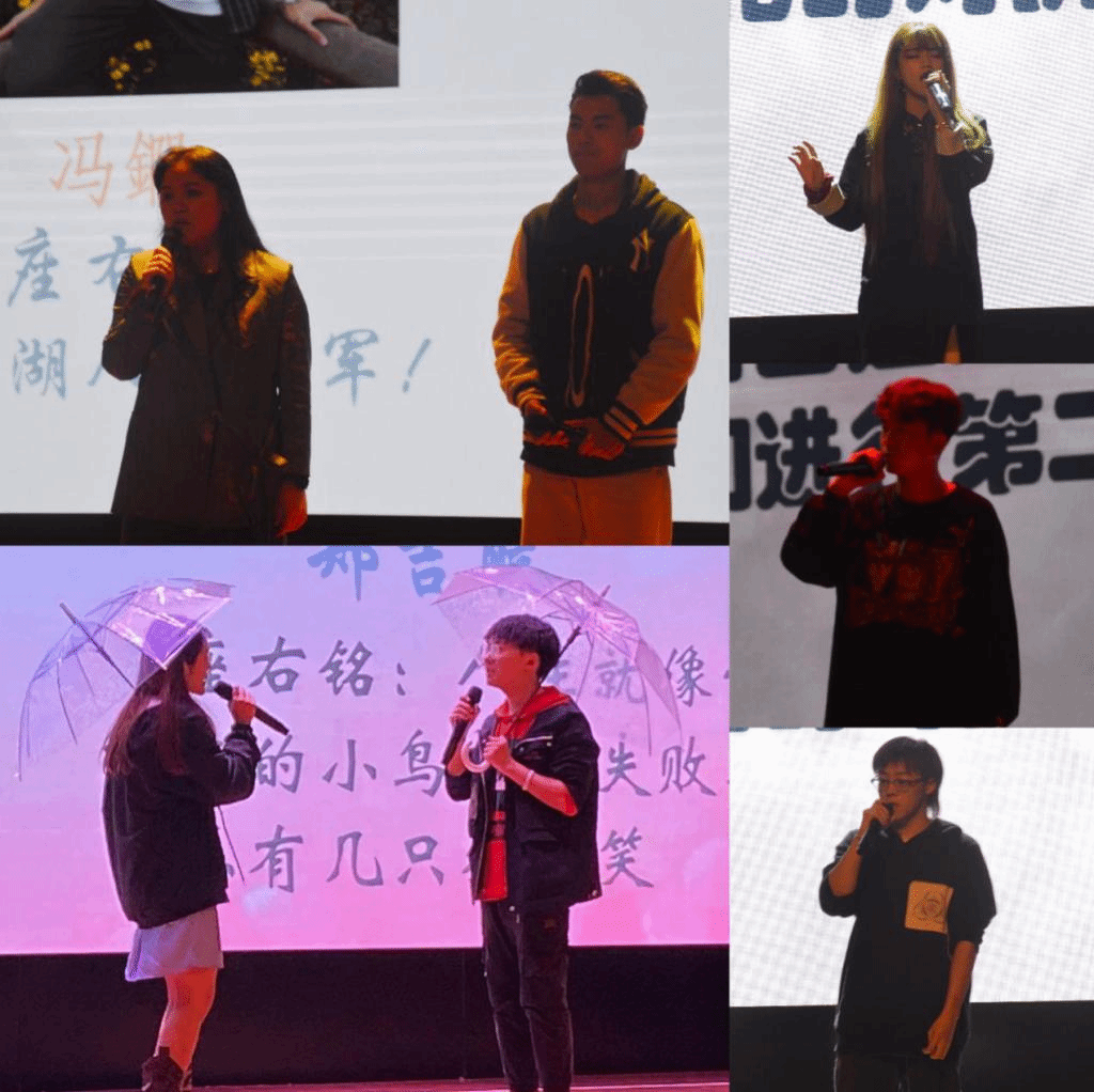 经过第一轮的角逐,有一部分选手暂时离开了舞台,纵使万般不舍,但比赛仍要进行。在第二轮中王海军演唱的《头发乱了》一下便带动了全场的气氛,经典欢快的旋律朗朗上口,台下的同学纷纷跟唱;而尹毅凡带来的《就在这瞬间》向同学们展示了特殊的美声唱法,不禁使人赞叹。面对即将到来的终局之战,气氛逐渐紧张,在这期间谢君杰同学为大家带来脱口秀《百家笑坛》,幽默的语言和肢体动作逗得大家捧腹大笑,紧张感一扫而光。来到第三轮的最终对决,选手们使出了自己的浑身解数。何胜文的一首《玫瑰》将民谣歌曲的深情与故事性表现得淋漓尽致;而黄羽萱的《身骑白马》和王文慧的《阿刁》为大家带来了一场高音盛宴,十分有魄力的高音在大家的脑海里挥之不去。选手们的水平不相上下,第三轮结束后同学们都陆续有了自己心中的冠军人选,怀着激动又期待的心情等候获奖结果的公布。
