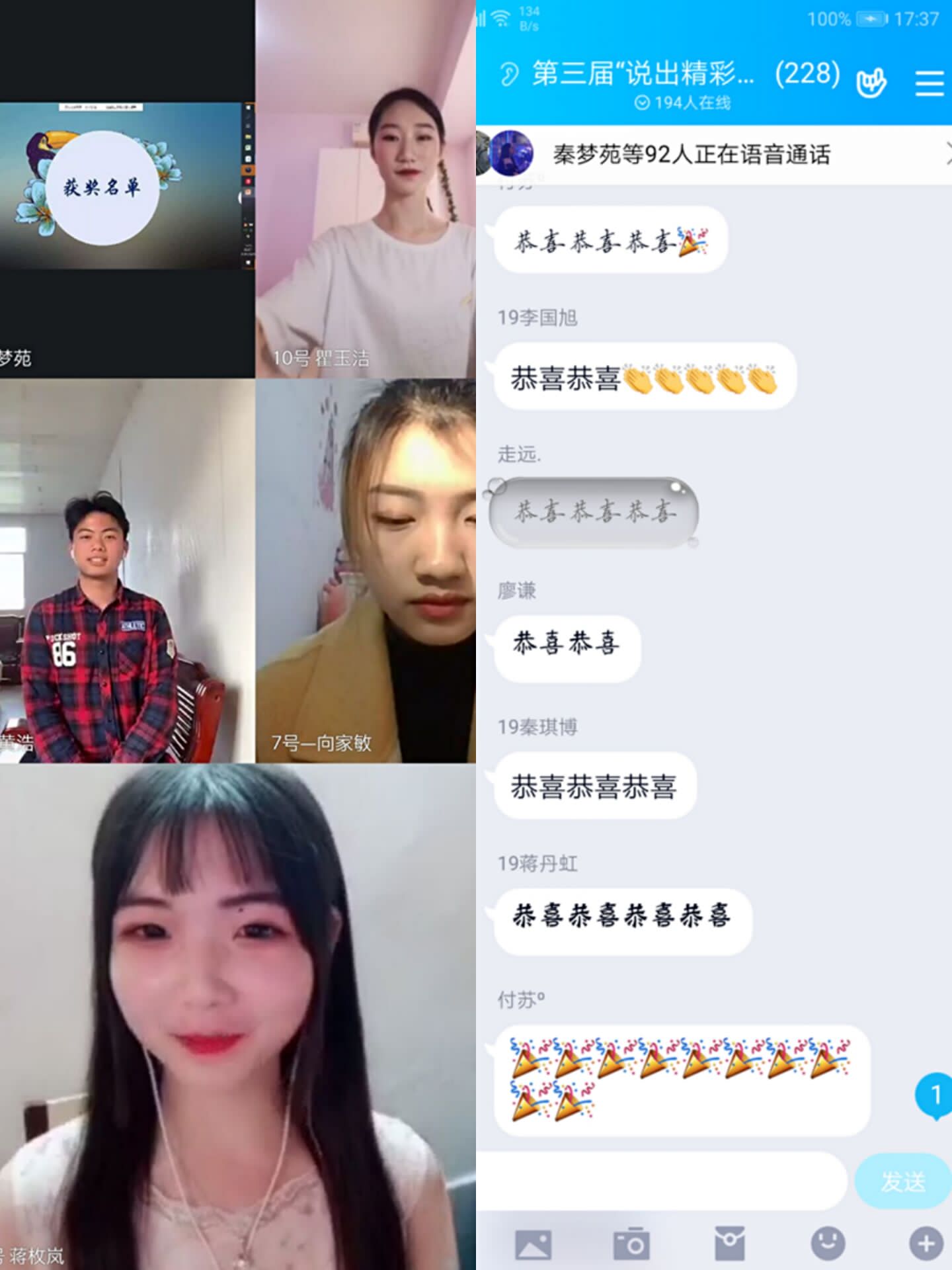 本次比赛采取线上淘汰制,作为本次比赛的第一轮,12位选手通过赛前抽签的方式,按顺序两人一组,一个话题比拼,每组只晋级一位选手,共晋级6位选手。每个选手都结合当前时事,以不同的角度进行演讲,情感饱满,扣人心弦。