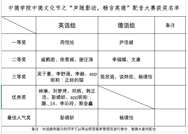 本次的双语配音大赛主要是语音模仿,这对语言学习有着巩固基础与运用提高的效果,发音标准与语调自然便于更流畅的与人进行交流,清晰的表达自己的观点。线上配音,不仅激发了同学们学习英德双语的积极性,还促使非专业学生群体体验了德语、英语这两门外语的独特魅力,
