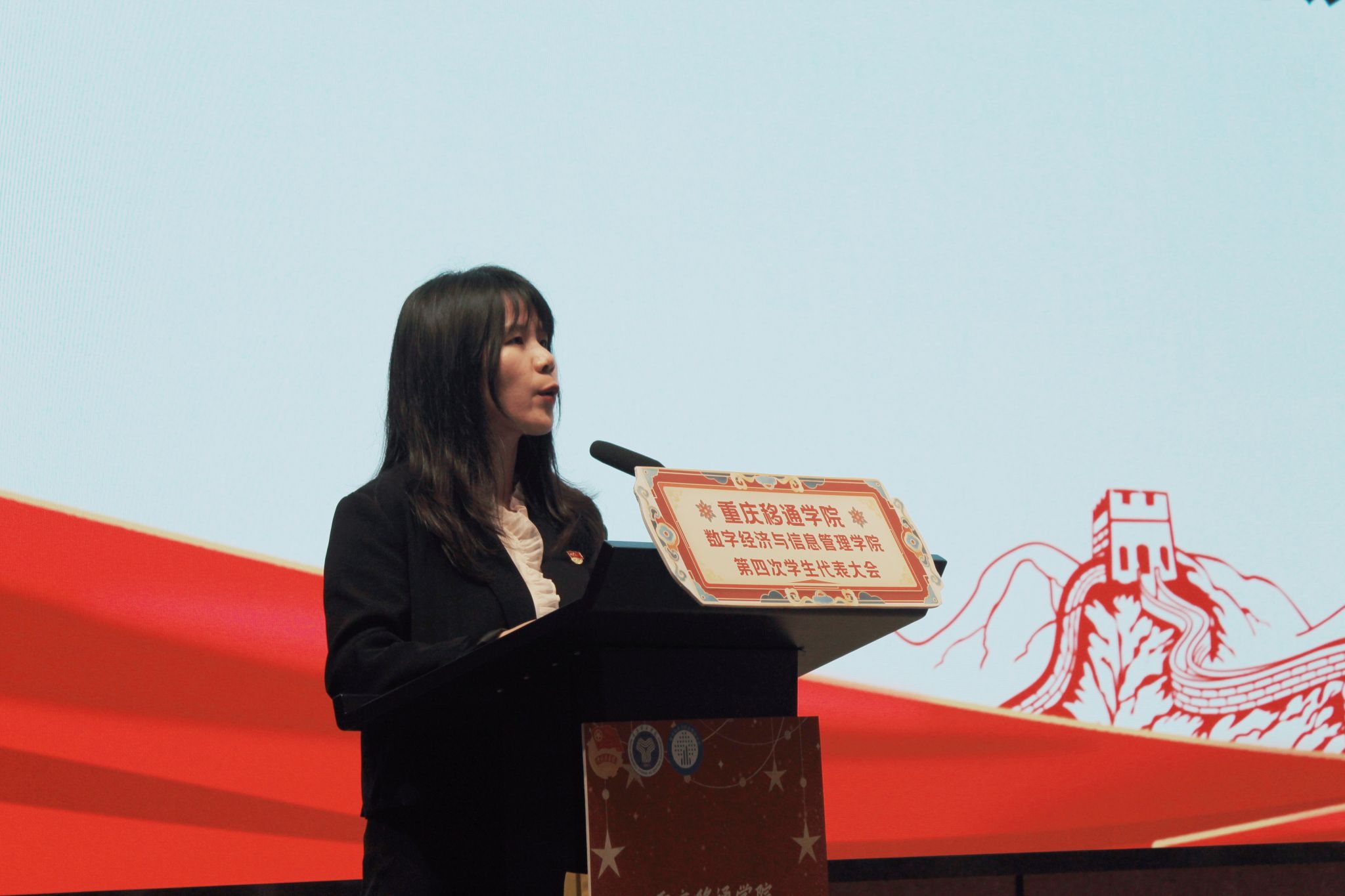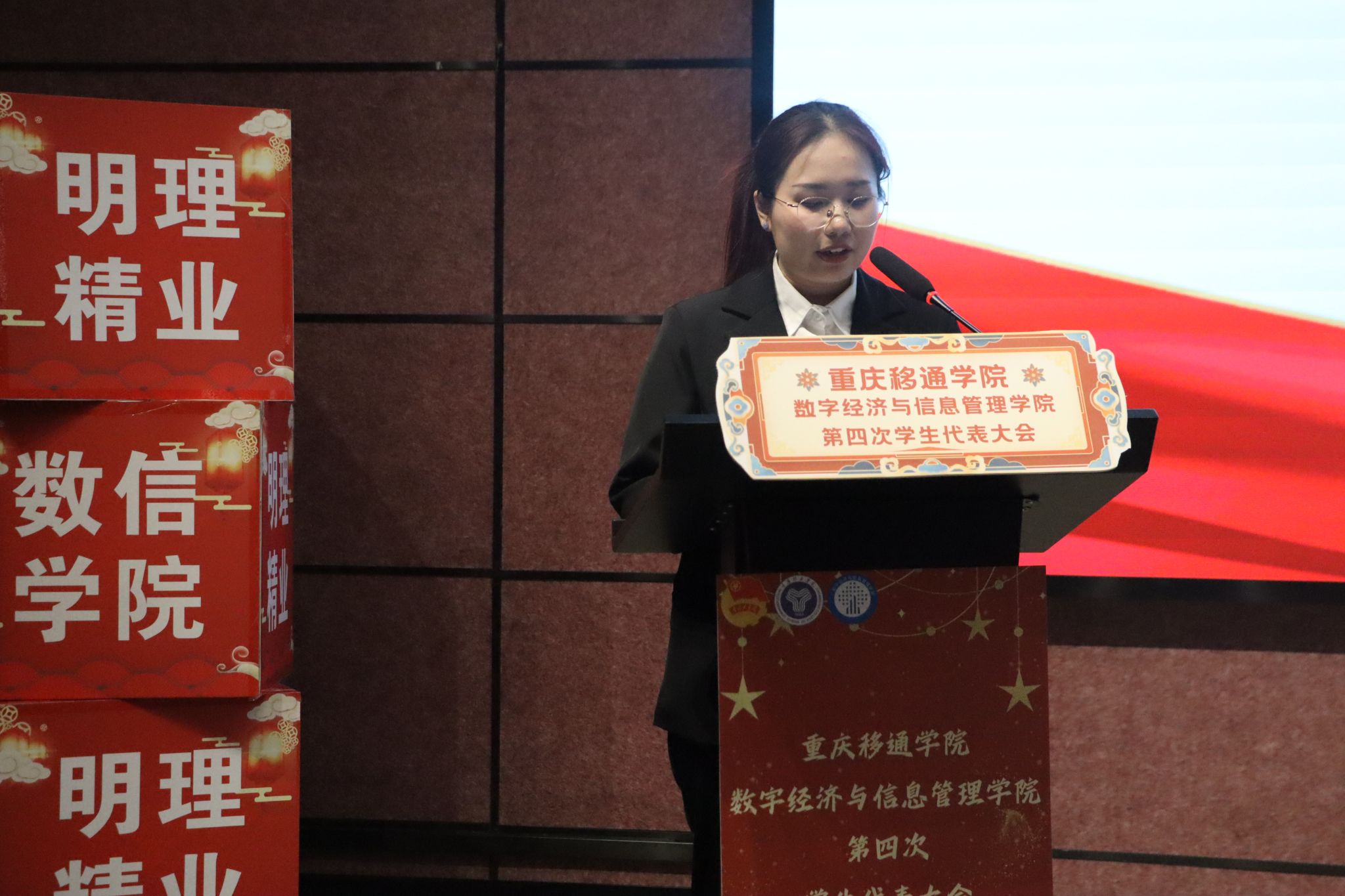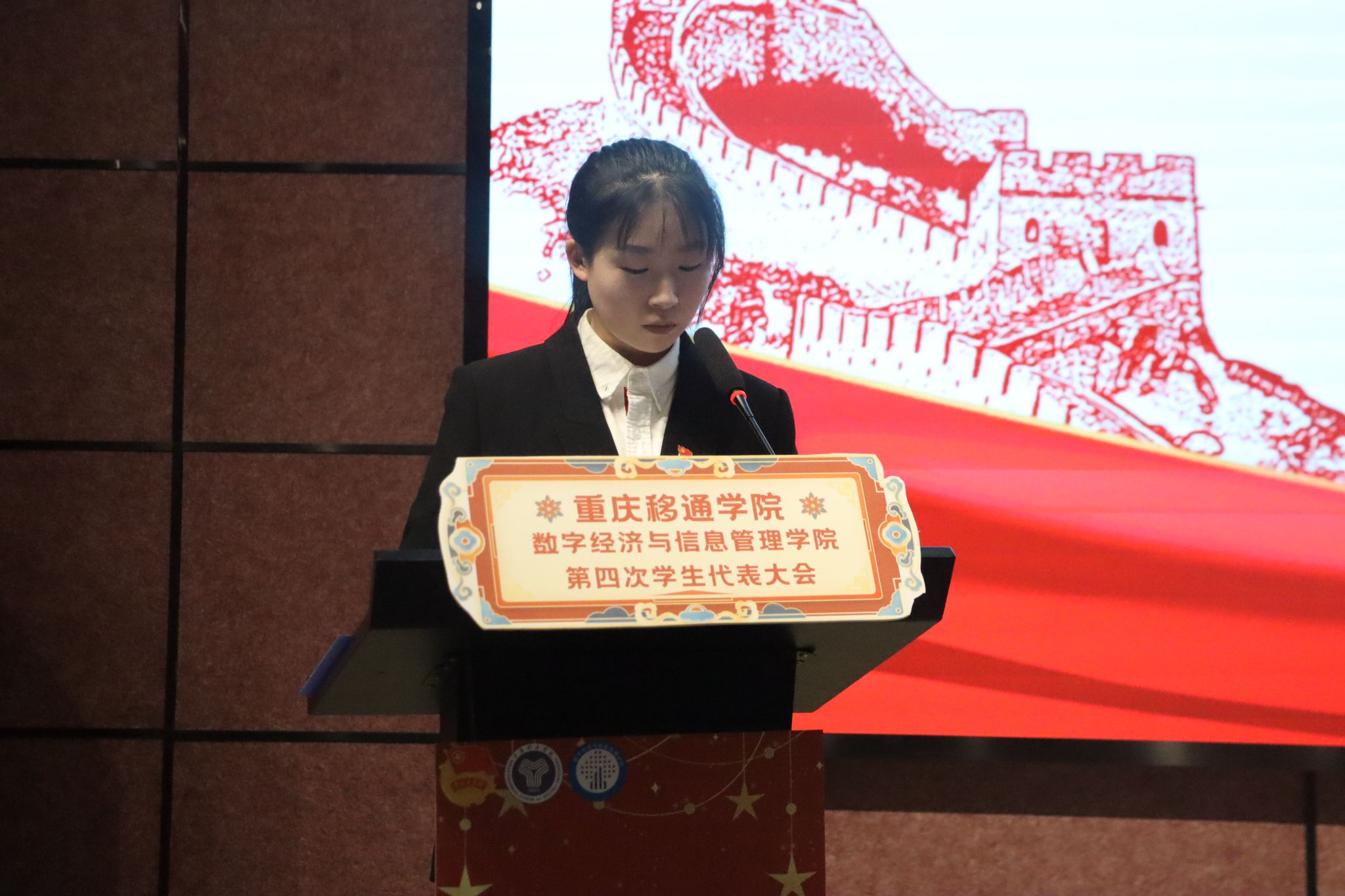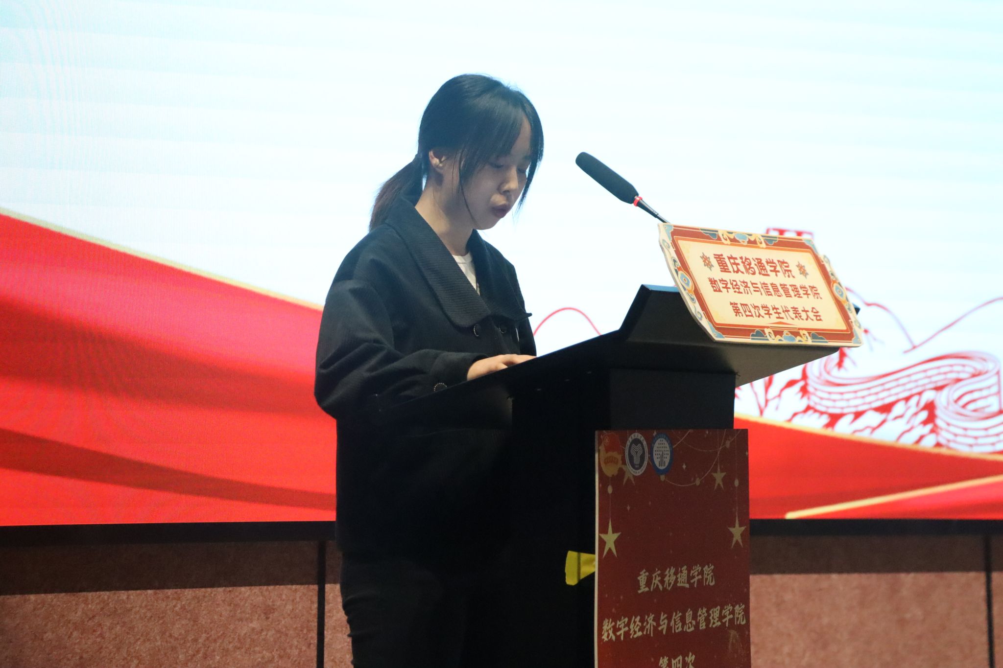 学生会主席周刘霖柯同学作《重庆移通学院数字经济与信息管理学院第三届学生委员会工作报告》。报告全面、客观回顾总结了过去一年我院学生会的工作和经验,明确了当代青年学生的历史使命和学生会的工作任务,提出了我院学生会未来的工作目标和主要任务,需不断增强学生组织工作人员的政治性、先进性、群众性,增强学生会队伍的团队意识和执行能力,使每一位成员能深刻体会到作为学生骨干的责任和义务,真正做到立足学校、服务学生、提升自我。