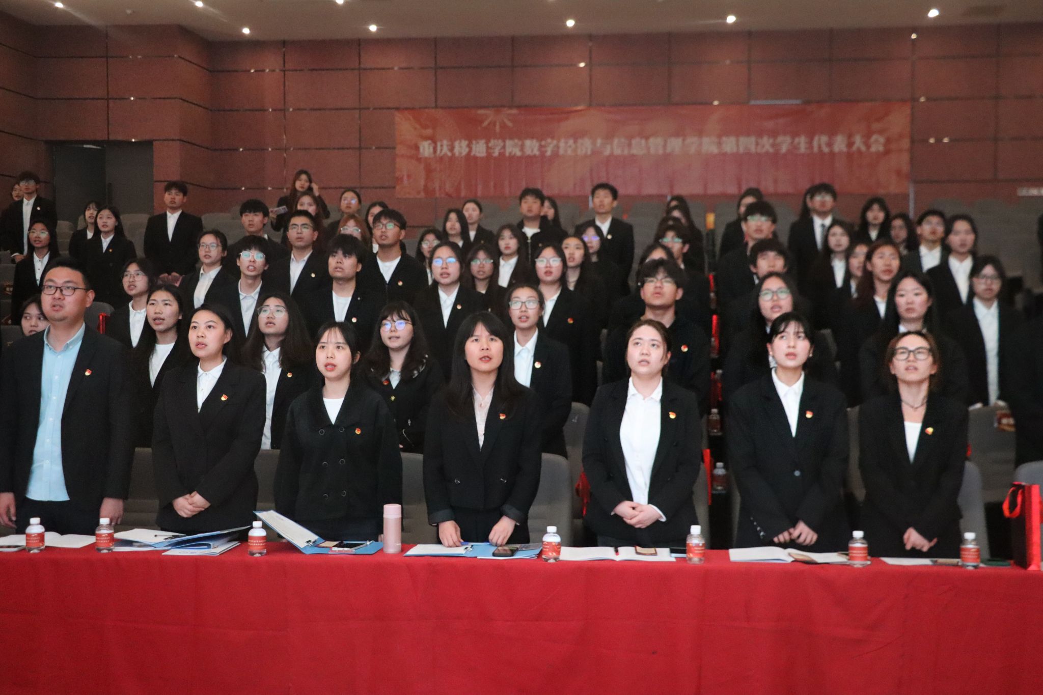 激扬青春动能,谱写崭新篇章。2024年3月29日,重庆移通学院数字经济与信息管理学院第四次学生代表大会在贤者楼423多功能报告厅顺利召开。校团委学生会指导老师曹誉莹老师、数字经济与信息管理学院副院长、党总支副书记任瑞娟老师、团总支书记潘锐老师、学生工作办公室主任任超群老师、就创板块指导老师陈燕华老师、宣传板块指导老师田园园老师、竞技体育板块指导老师王健老师、志愿服务板块指导老师张静老师及122个学生代表出席此次会议。