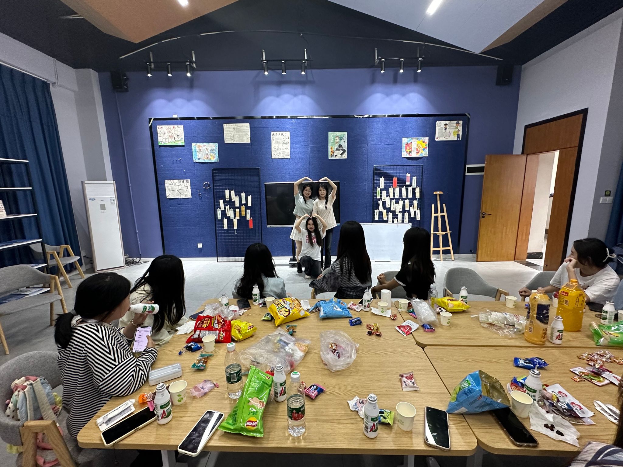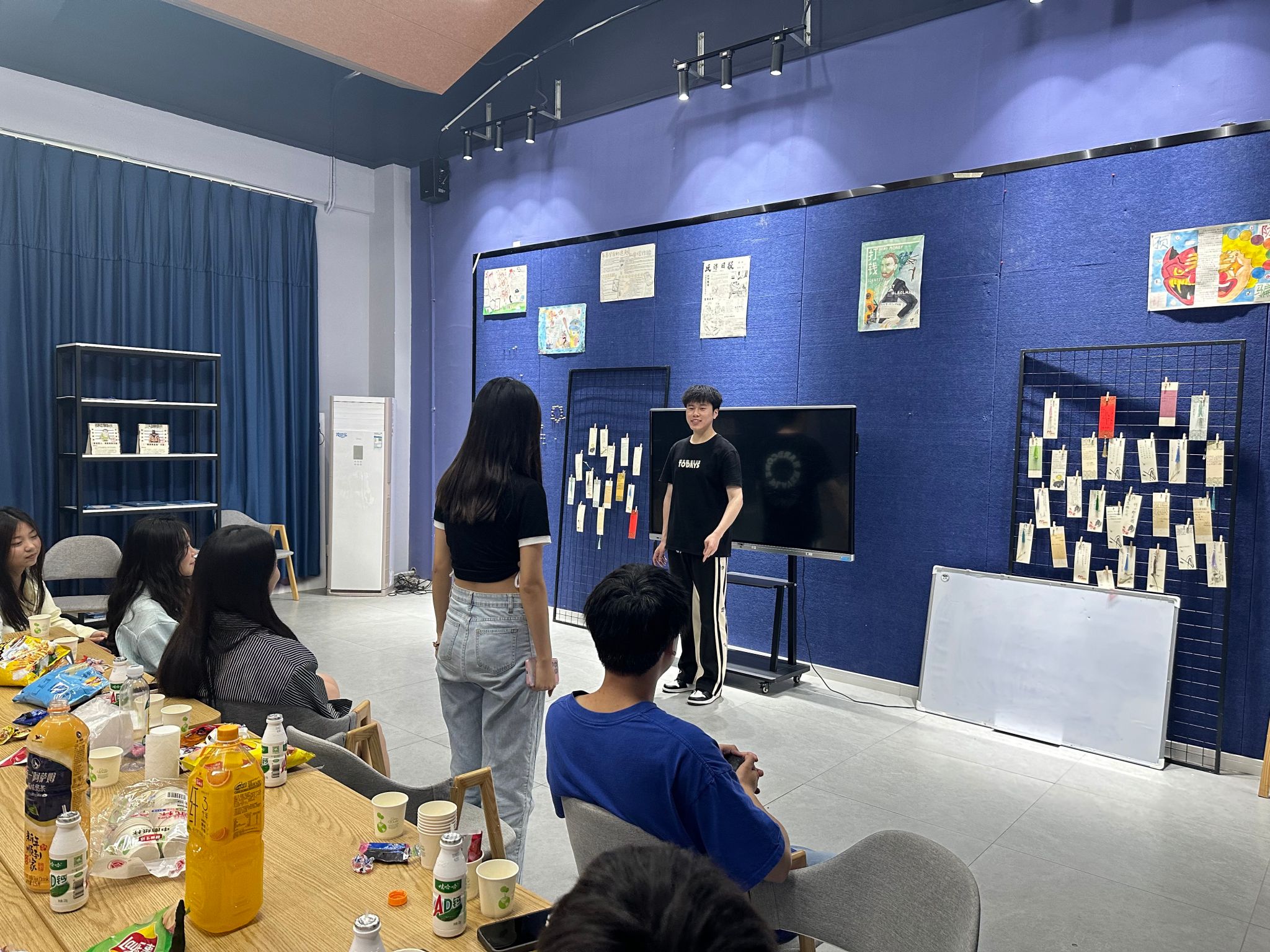 团建凝心志,才艺映风华。接下来,由杨玉玲、熊文林和谢怡三位同学带来了热情洋溢的舞蹈表演,女孩儿们干净利落的舞姿,展现了她们独有的青春活力。各位部长和干事围坐在一起,品尝美食,观赏着不同成员的精彩表演,共同载歌载舞,津津乐道,其乐融融。表演结束后,大家还参与了“数字炸弹”“你画我猜”等趣味游戏环节。这些游戏不仅增进了部门成员之间的默契与友谊,也为现场观众带来了欢乐和笑声。在游戏环节,大家积极参与、热情高涨,充分体现了部门的凝聚力和团队精神。
