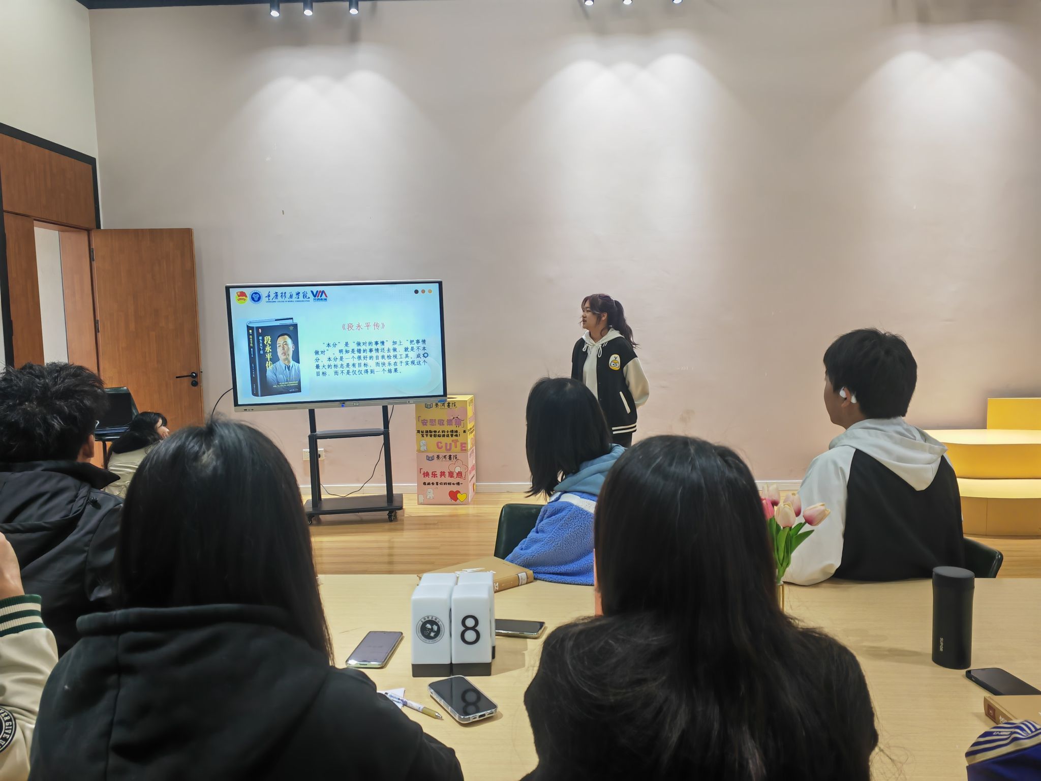 在活动开始,主持人分享了他所读过的一本书——《段永平传》并提出了学习段永平“做好人,做好事”的思想。并呼吁大家在雷锋月积极学习雷锋精神,热爱生活,热爱学习工作!段永平把先做人,再做商人深深刻在心中,让自己问心无愧。最后主持人以段永平的“做对的事情+把事情做对”来鼓励大家在日常生活中做人做事要讲本分。