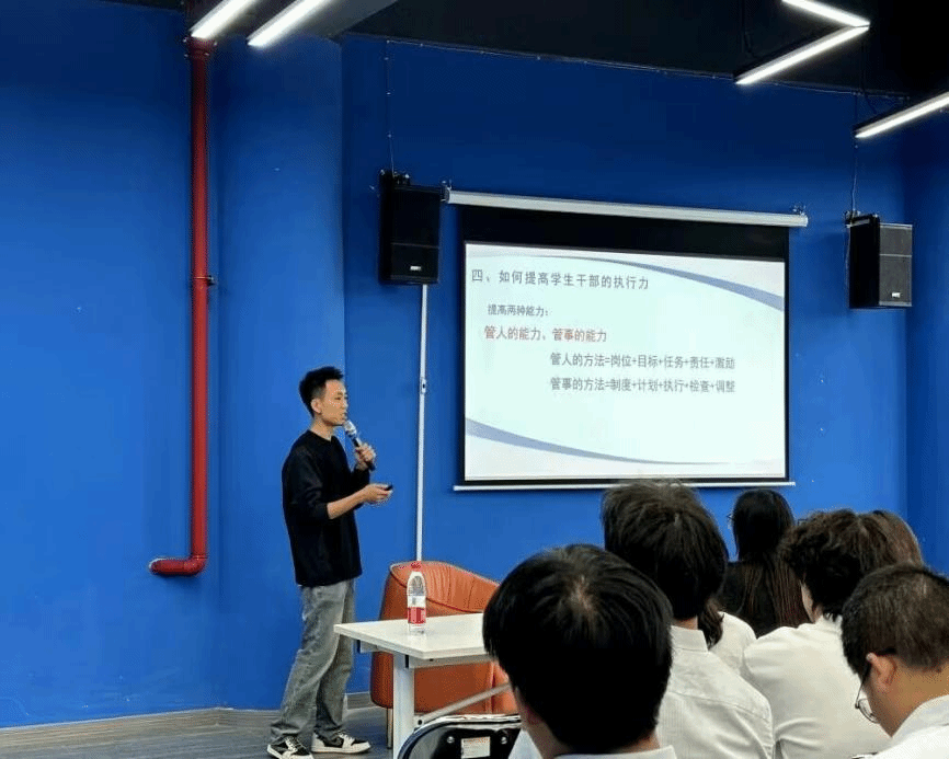谈到工作,肖哲老师第一个说到的便是“结合实际制定工作计划”。一日之计在于晨,一年之计在于春,一生之计在于计划。他聊到曾经自己在校团委工作时,时常鼓励大家制定学期计划、每月计划与每周计划,他认为原因在于人都有精神阈值,到了临界点都会想要逃避工作,这时工作计划就发挥了它的督促作用,避免了deadline的烦恼,提高了工作效率。接着,肖哲老师提到,如果想开展好一个活动,首先是强化宣传,让更多人知晓,吸引更多人的目光;其次就要求组织者认真筹备工作计划,这时工作计划的重要性就体现了出来,即分工落实到每个人,明确到目标和方法、人员搭配及时间,确保活动能够顺利完成。同样的,每次活动都是一次试错的机会,通过复盘每次的错误就能意识到自己的不足,从而掌握每处细节,小事成就大事,细节成就完美。同学们也积极表示在未来的工作中希望自己也能够力求完美,将每次的活动当做试错的机会,把细节融入习惯,让活动更加有声有色。