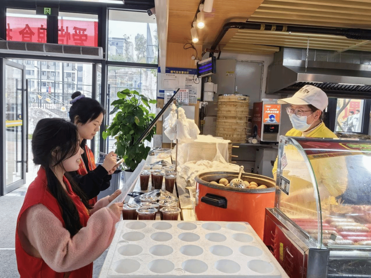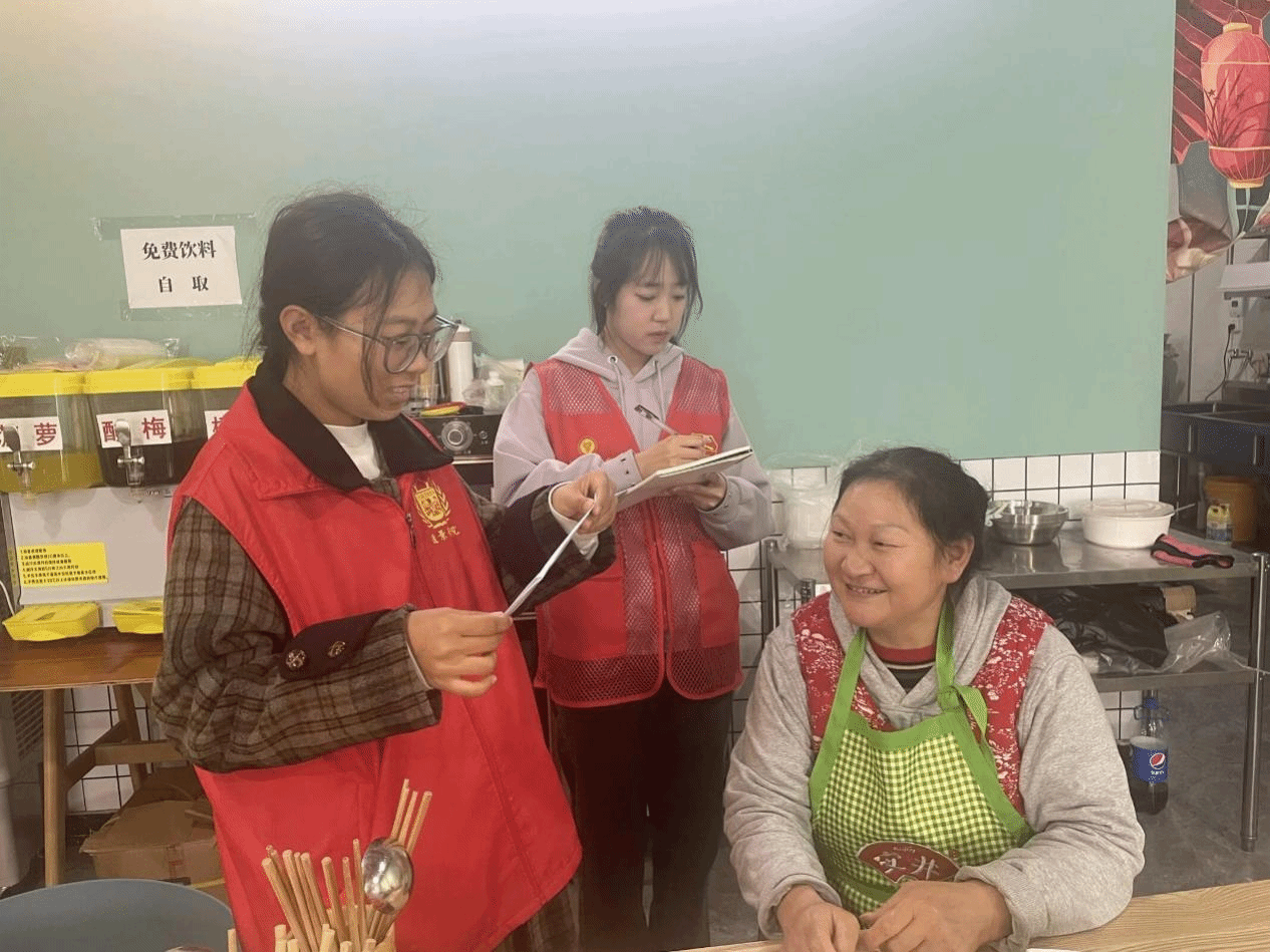 接着,志愿者们告别食堂,前往超市。面对志愿权益维护知识宣传,超市的工作人员连连点头,表示十分认同。面对如何处理临期货物的难题,一位阿姨领着志愿者们来到货架,拿出刚下架的过期货物,并表示“临期货物会及时下架,将心比心,我们不会拿过期食物给同学们吃”。听到此,志愿者们心中淌过暖流。