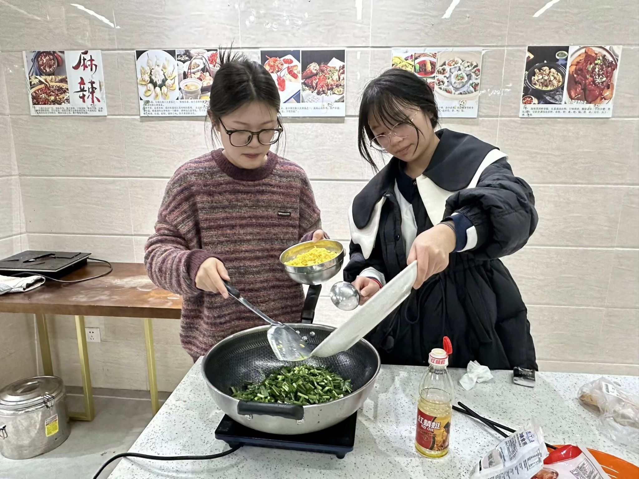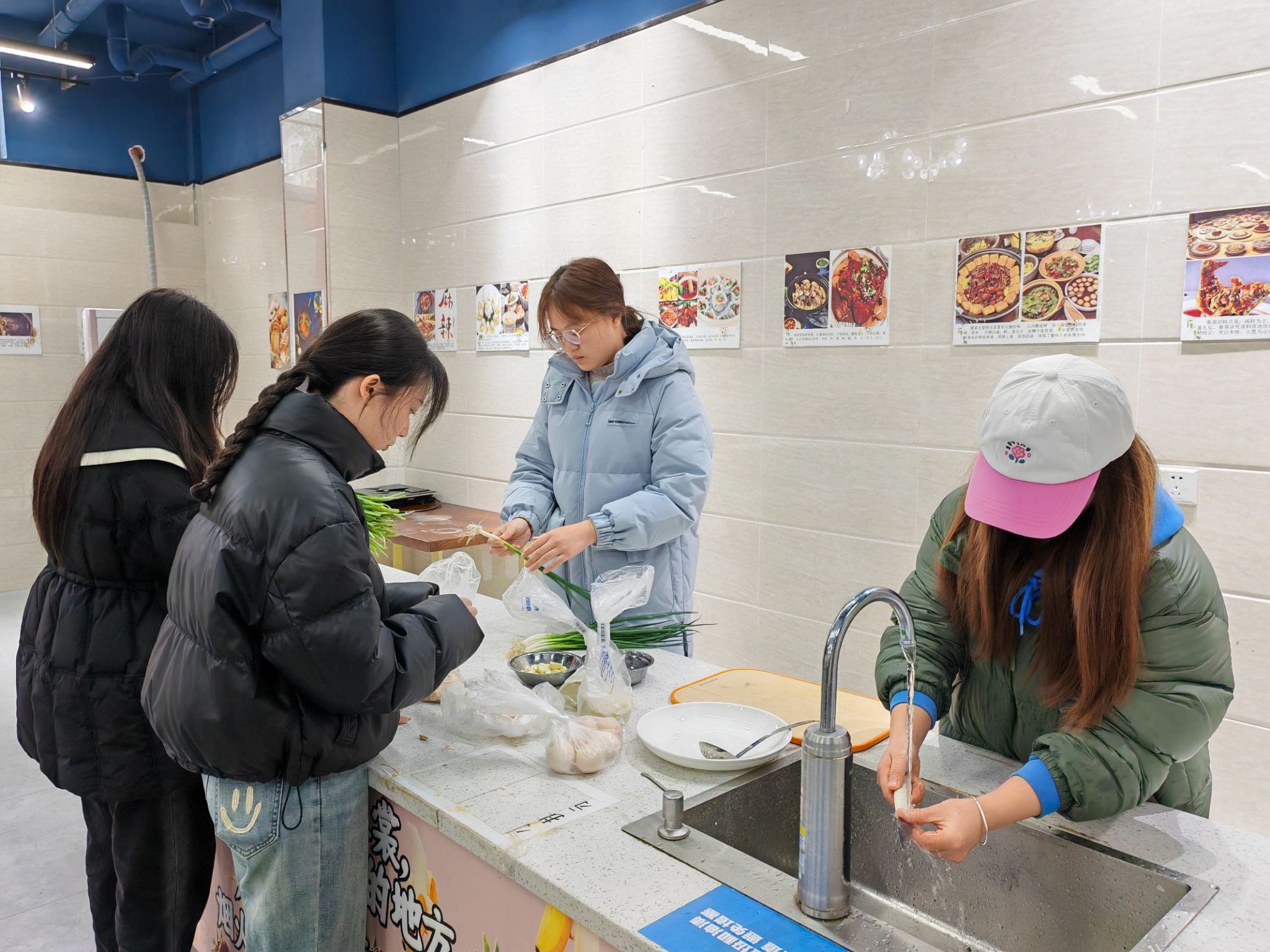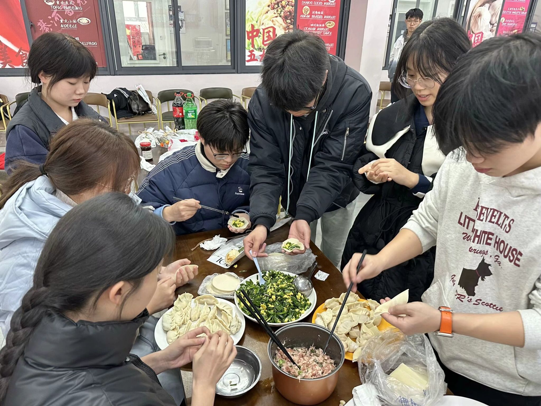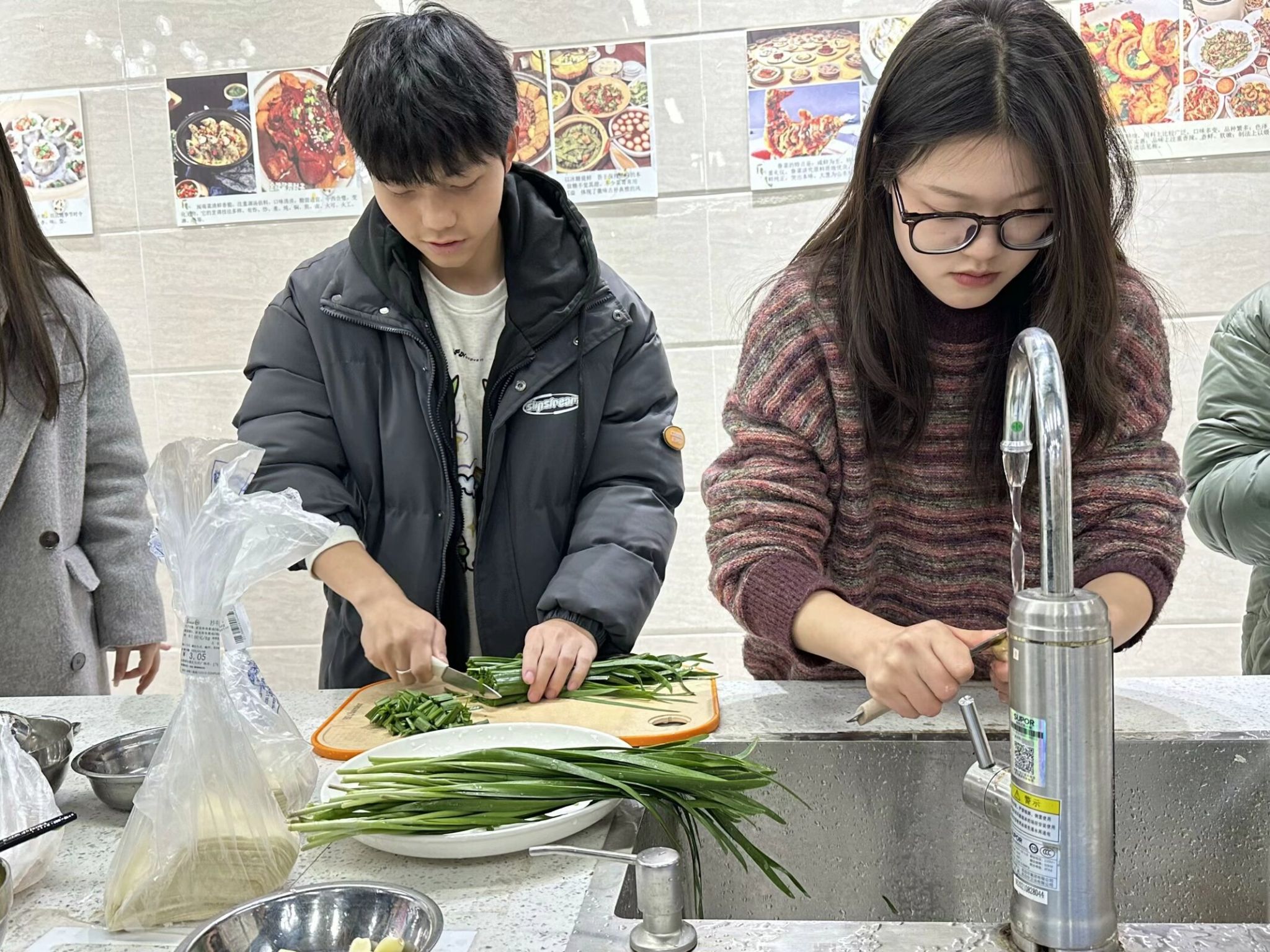 按照提前分配的任务,大家各司其职,从细心挑选食材开始,一直到根据不同口味喜好熟练制作肉馅和韭菜鸡蛋馅的抄手和饺子。在烹制的过程中,每位同学都全力以赴,期待着美味的胜利。厨房里弥漫着浓浓的温馨气息,每个人的脸上都洋溢着愉悦与激动。这不仅是技艺的交流,更是真诚友谊的凝聚,团队默契的磨练,以及团队凝聚力的增强。