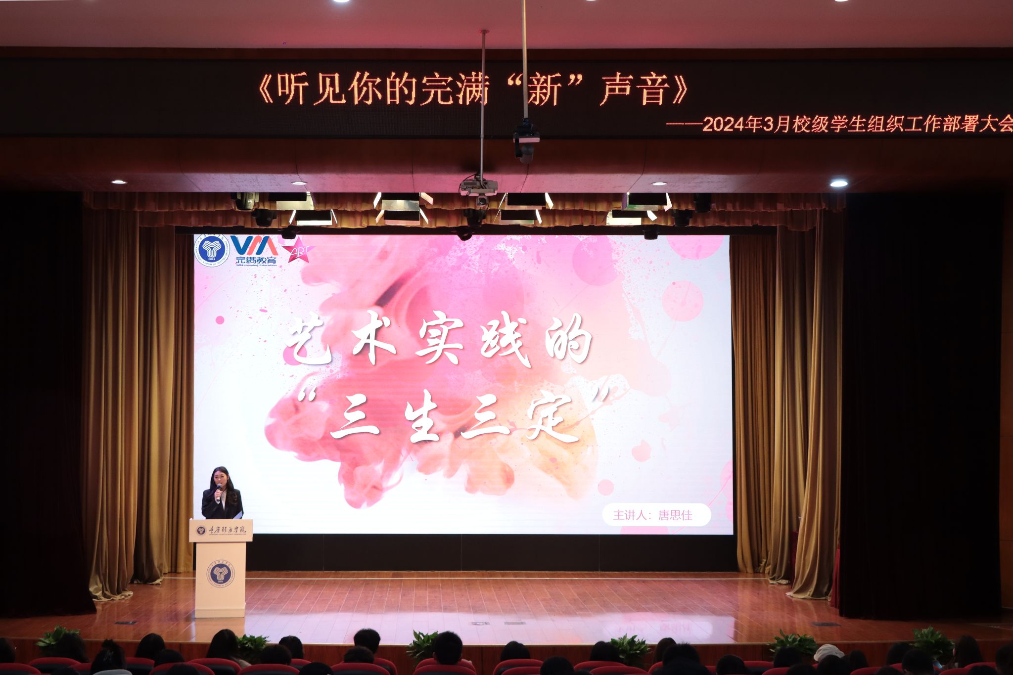 为有序推进完满教育发展,充分展现校级学生组织新学期精神风貌,梳理各校级学生组织3月重点工作,校团委于3月4日中午12:30在下里巴人剧场开展以《听见你的完满‘新’声音》为主题的3月校级学生组织工作部署大会,紧紧围绕完满教育月度关键词“声音”展开分享,发出属于八大校级学生组织的“新”声音!