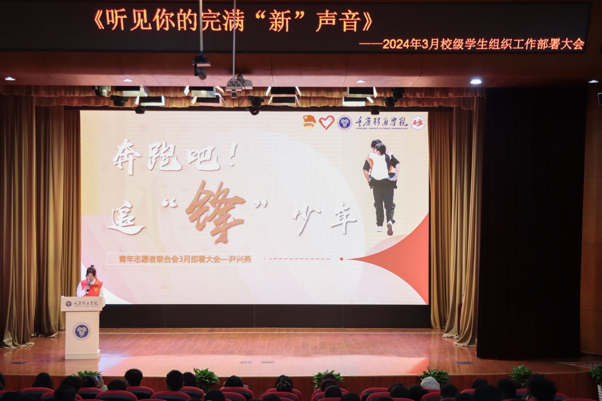 青年志愿者联合会以《奔跑吧!追“锋”少年》主题展开分享。寒假期间,他们组织志愿者在投身践行乡村振兴、生态文明建设等社会公益事业中迸发志愿活力。在本月,他们还将组织开展“恰青春·‘锋’华正茂”3.5雷锋月主题系列活动和重庆市第七届运动会志愿者招募活动,期待在本月传递更多声音,做更好的移通志愿人。
