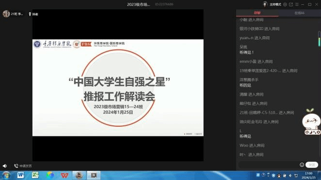 1月16日至1月31日,各二级学院团总支在充分学习了解推报程序基础上,通过线上会议组织班级辅导员、团支部书记就“大学生自强之星”评选的动员工作、资料提交、材料审核、名额分配、评选标准等内容向班级同学们做了详细的解读,使同学们广泛对“大学生自强之星”有更深刻的认识与了解,积极动员符合条件的同学报名参加,鼓励同学们积极展现青年担当、讲述青春奋斗故事。