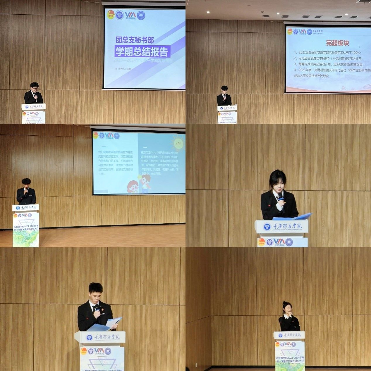 学院学生组织20位干部分别登台发言述职,围绕各部门在本学期的主要工作内容及成果进行述职,总结本学期的工作并展示部门的特色创新工作成效,回顾昔日完满活动,规划未下一阶段的发展版图。团总支组织部、秘书部、宣传调研部、美宣科技部、就业创业助理团、青年志愿者协会,学生会办公室、学习部、权益女生部、文艺部、体育协会,特色支队“e”心禁毒志愿服务专项支队、送“我”回家失物招领志愿服务专项支队、 天使关“艾”志愿服务专项支队、送“我”回家失物招领志愿服务专项支队共20个部门的述职总结报告,据实统计数据,丰富述职内容,此外他们详细介绍了各自组织的主要工作内容、取得的成果以及未来的展望。不仅是对工作的总结,更是对未来的拳拳规划。干部们在台上的表现,体现了他们的领导能力和责任感。他们能够清晰地表达部门的工作成绩和计划,展现出了自己的专业能力和执行力。在面对部门工作中的困难和挑战时,干部们能够保持镇定和自信,展现出了他们的领导魅力和韧性。