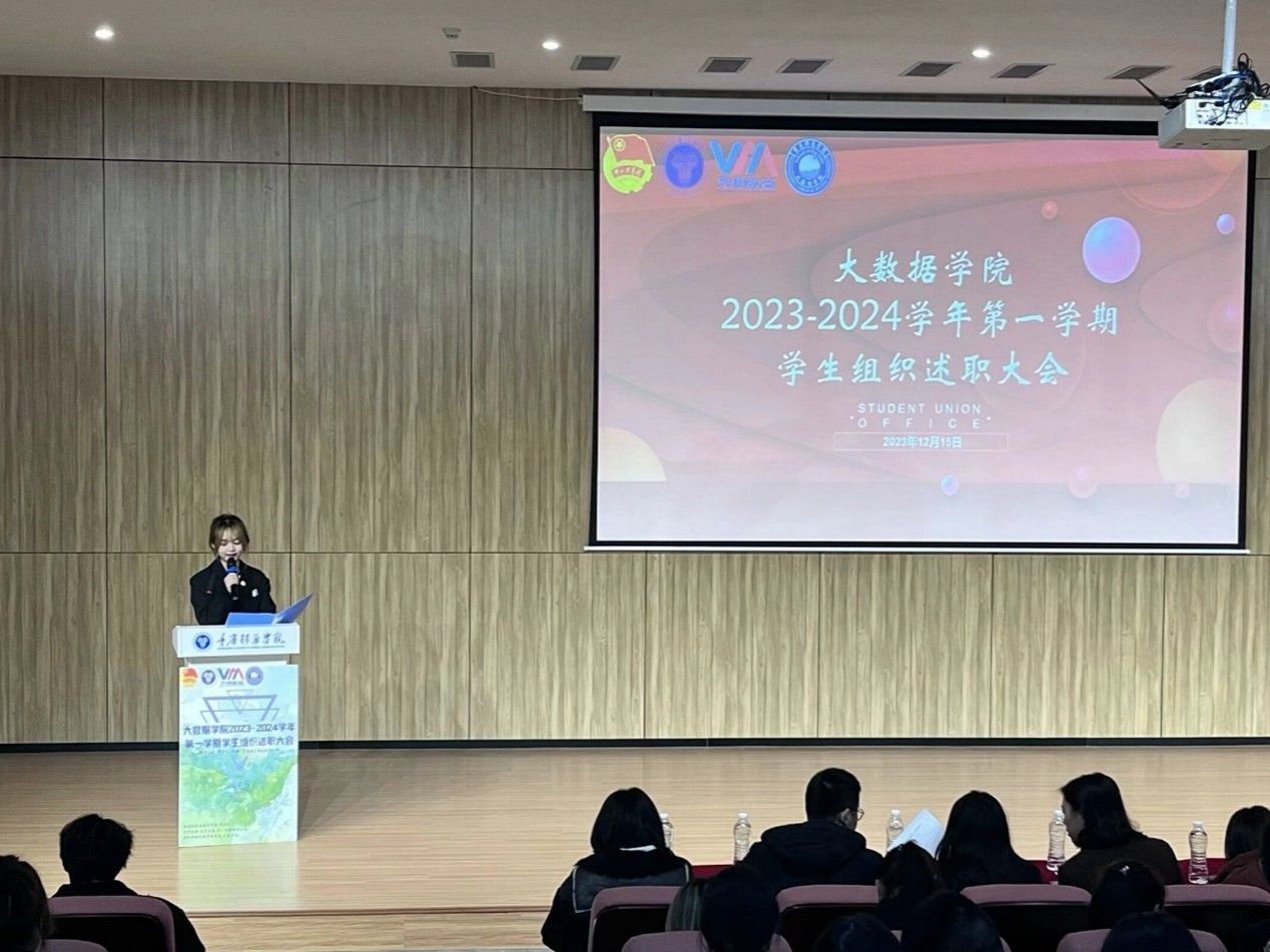 为进一步总结和反思本学期学生组织工作,树立一批优秀学生组织和优秀个人的示范榜样,更加深入地强化学院各学生组织的积极性与凝聚力,更好地促进学院学生组织的全局发展,实现完满教育各版块全面开花,同时也为下学期工作更好启航,在本学期的学习生活闲暇之余,于2023年12月15日下午14:30在重庆移通学院綦江校区贤者楼131会议室开展大数据学院2023-2024学年第一学期学生组织述职大会暨述职酒会。