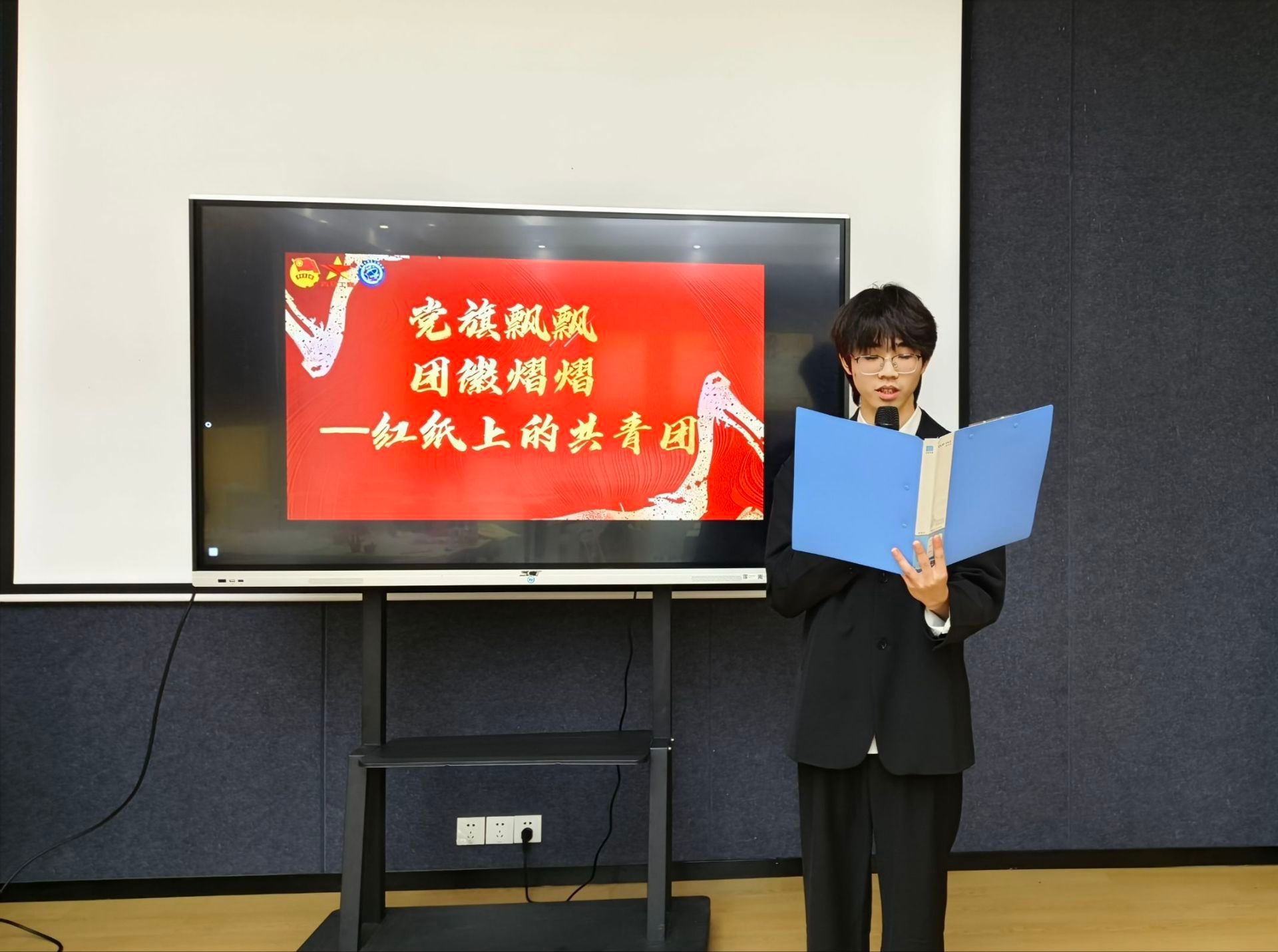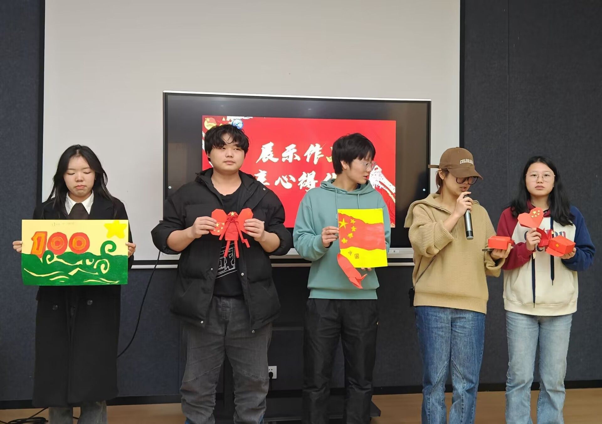 随后,进行了折纸、绘画的展示和心得体会的分享。各班班长作为班级代表纷纷上台分享了他们折纸与绘画的创作灵感和意义。其中,青马完骨一班的同学说道:“我们的灵感源自于折纸的共青团团徽。在绘画过程中,我们始终以展现共青团的精神面貌和价值追求为核心,以传达共青团的理念和口号为目标。”通过本次课程,青马学子们对共青团的意义和价值有了更深入的理解。