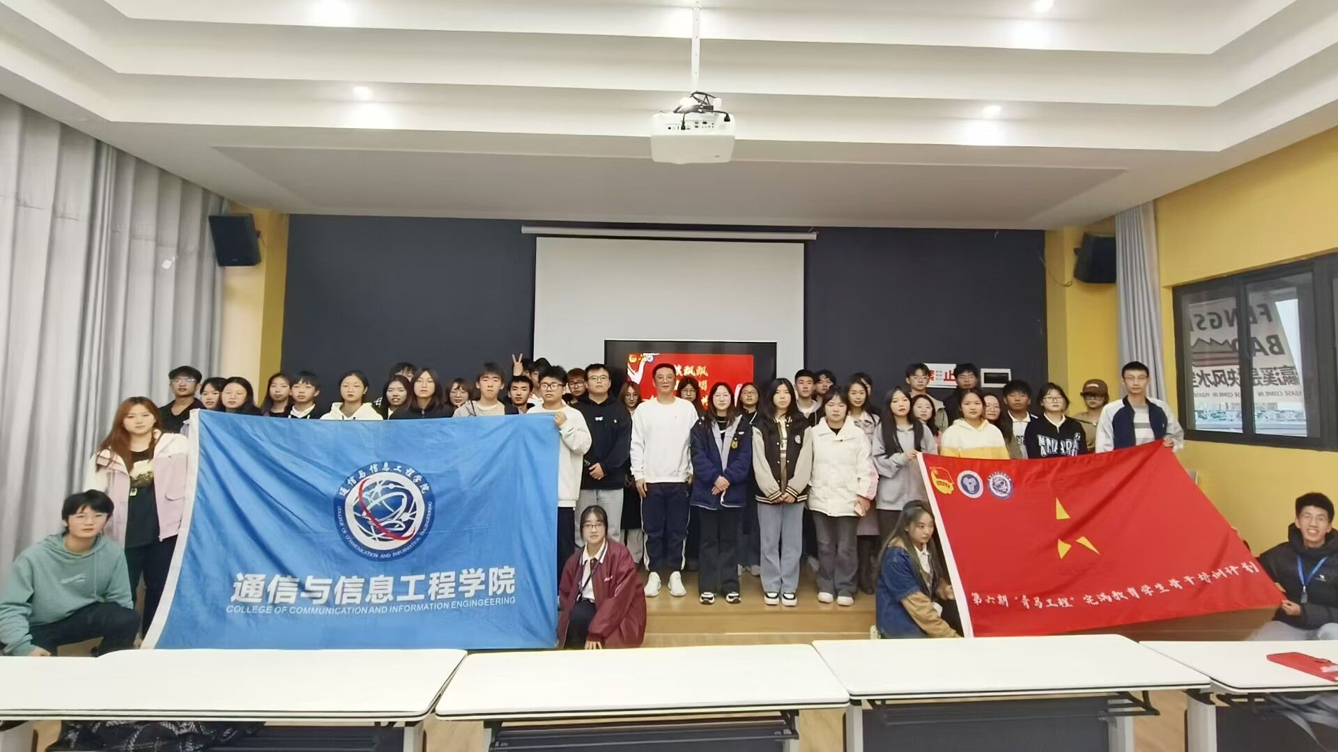 为了让青马学子进一步了解共青团,传承红色精神并提高团队协作意识和交流能力。通信与信息工程学院于2023年12月13日16:10在瀛溪书院回声报告厅成功举办了主题为“党旗飘飘,团徽熠熠—红纸上的共青团”第六期“青马工程”初阶班第二次理论暨实践课程。