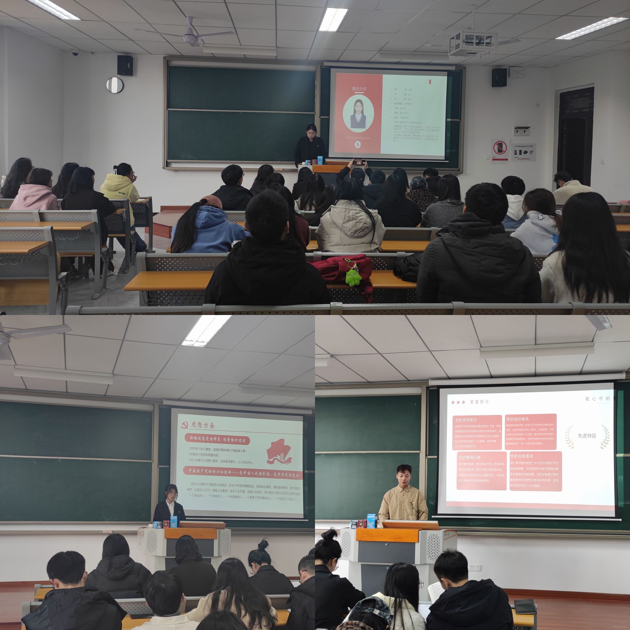 冯扬:在接下来的时间里,我会努力改进,在今后的学习、工作、生活中,虚心向身边的优秀同学和党员同志学习,不断进步,我会严格要求自己,努力提升自己,争取早日成为一名合格的中共正式党员!