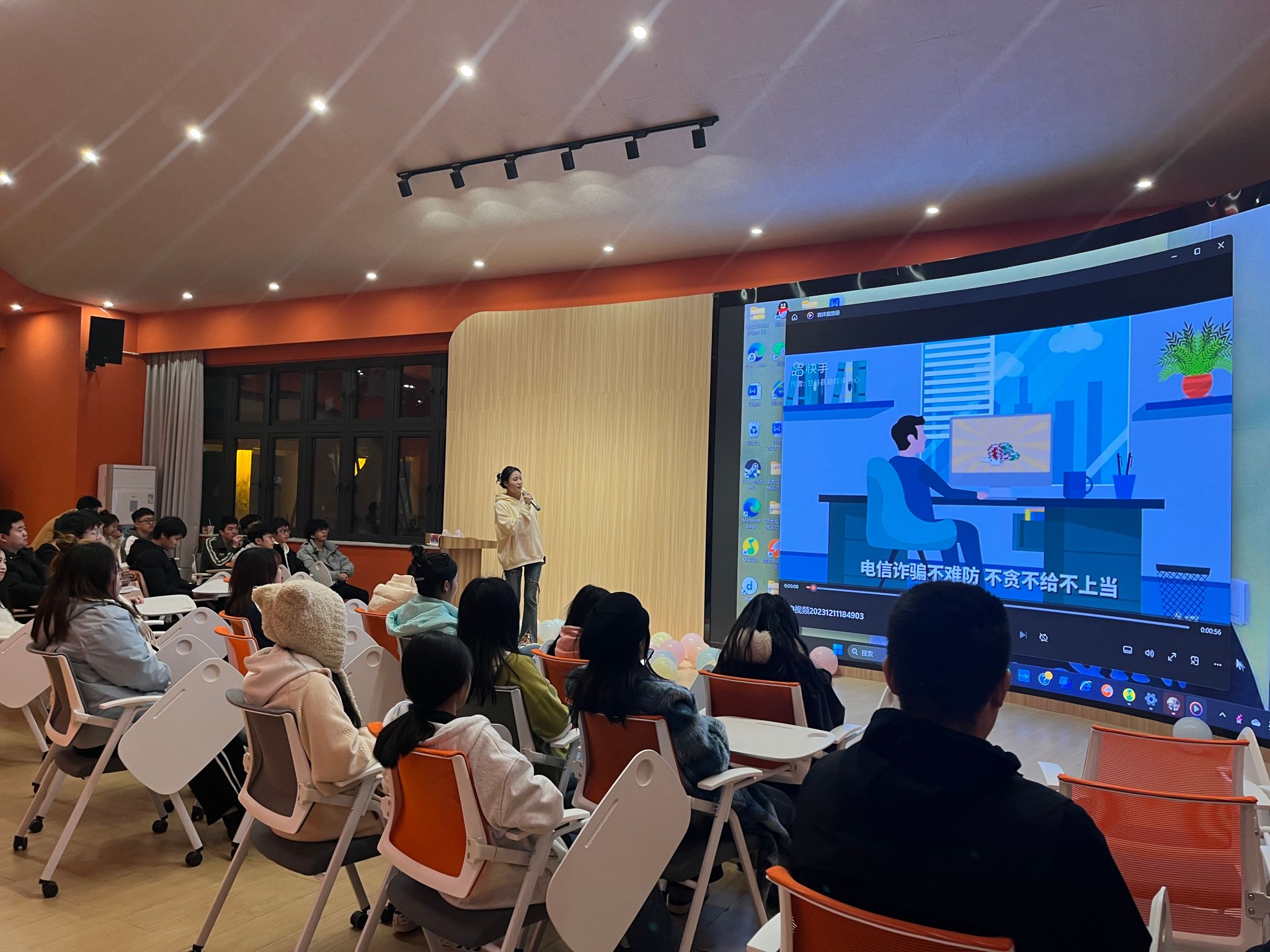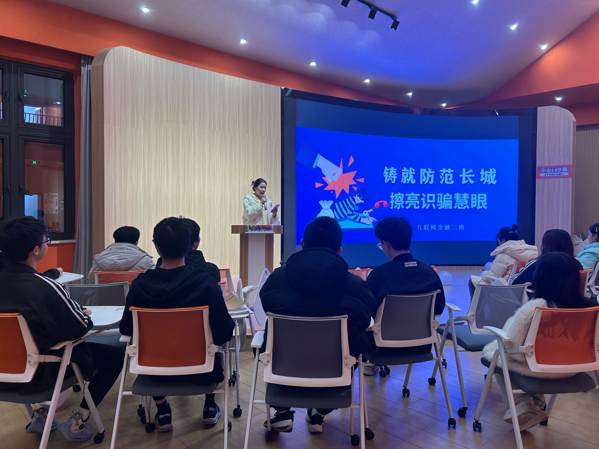 随着互联网和电信产业的迅猛发展,网络诈骗已经成为群众反映强烈的犯罪之一。为进一步提高同学们防范各类电信网络诈骗的安全意识,营造人人识诈、全民反诈的浓厚氛围,数字经济与信息管理学院2023级互联网金融3班于2023年12月11日19:00在古剑书院含光报告厅开展“铸就防范长城,擦亮识骗慧眼”主题活动。本次活动由班长钟佳宏、团支书王晓欢主持,共36名同学参与此次活动。